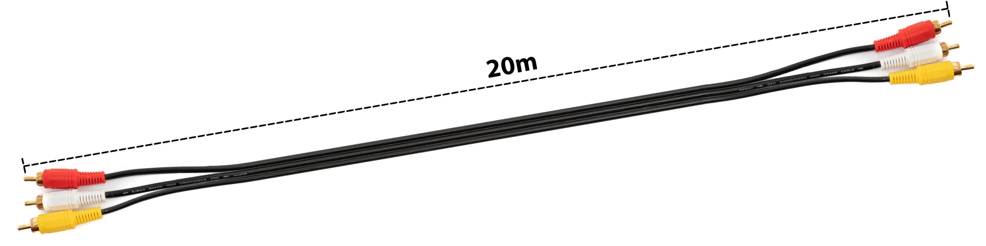 SYSTEM-S Cinch 3 RCA Kabel 20 m Stecker zu Stecker Stereo & Composite AV Schwarz