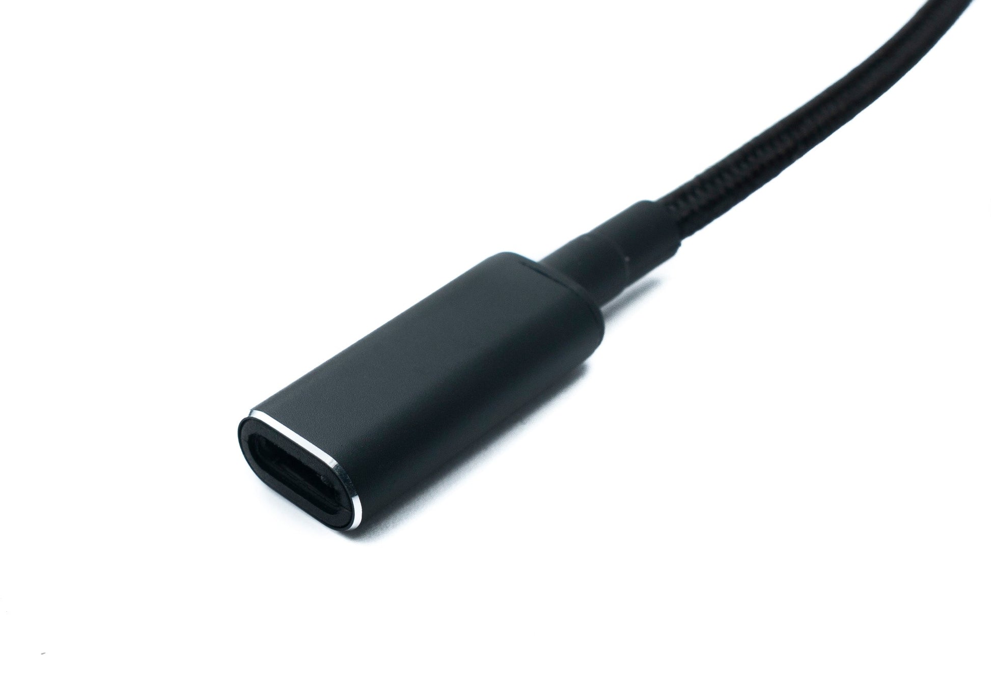Technische Details: Leistung: 100 W, Spannung: 18,5–20 V; Länge: 9 cm (ohne), 17,5 cm (mit Anschlüssen); Maße USB-C: 4,1 × 1,2 × 0,6 cm, DC: 5,6 × 1,1 cm; Gewicht: 10 g (Produkt), 2 g (Verpackung); Modellnummer: 89999363
