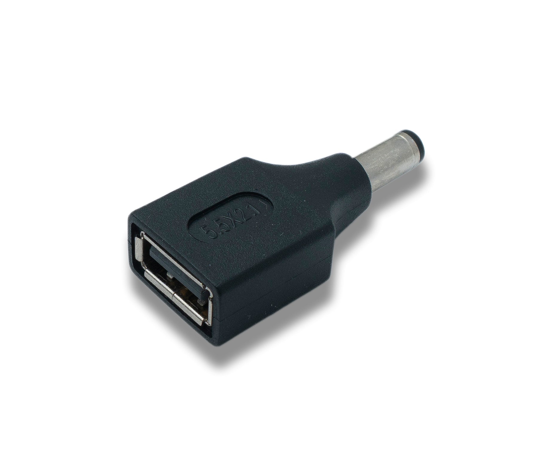SYSTEM-S DC Adapter 20V 5,5 x 2,1 Stecker zu USB 2.0 Buchse Kabel in Schwarz