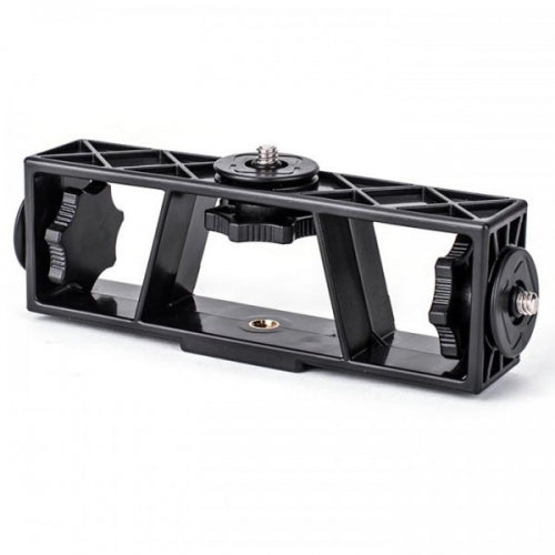 Design und Material: Die Halterung ist aus robustem Material gefertigt und in Schwarz gehalten, was eine professionelle Optik verleiht. Das Design ist kompakt und dennoch stabil, um eine sichere Befestigung Ihrer Ausrüstung zu gewährleisten.