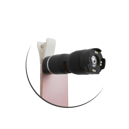 - Einfach Objektiv in die clip-on Halterung einschrauben und an das Gerät klemmen.