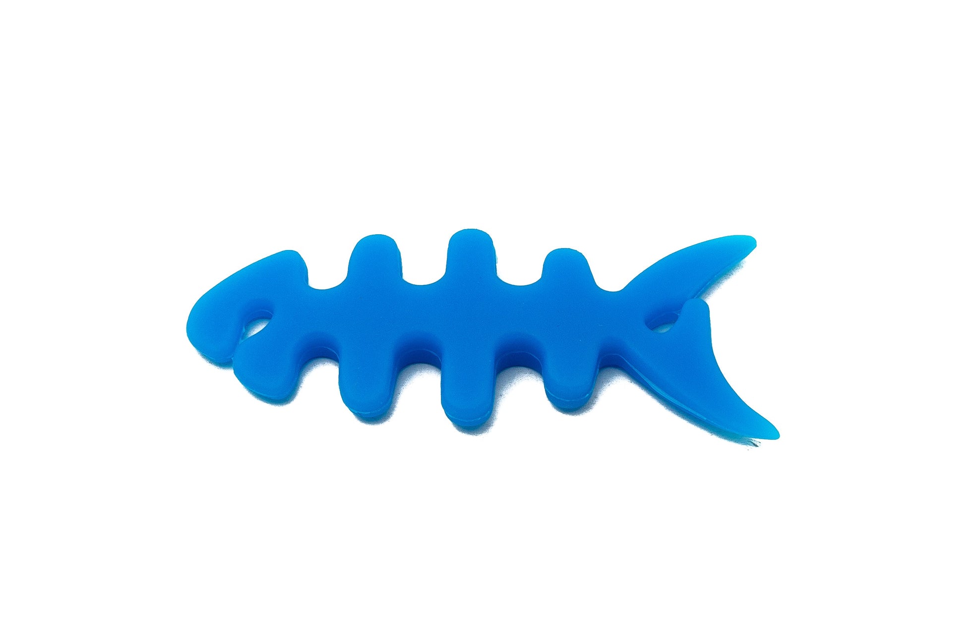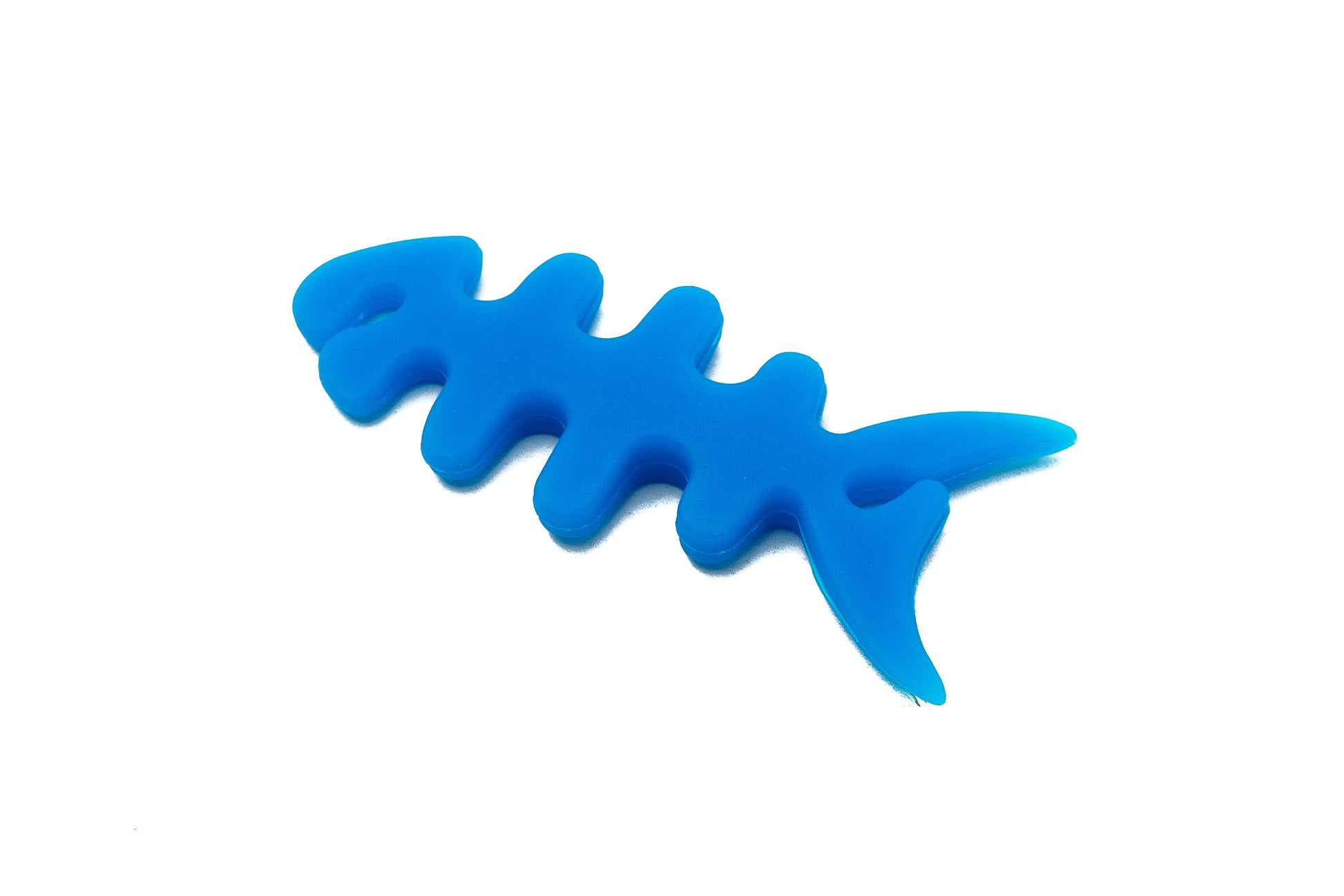 SYSTEM-S Kabelmanager Wrap Kabelaufroller Fischform Silikon Aufwickler Kabelschutz für Kopfhörer in Blau