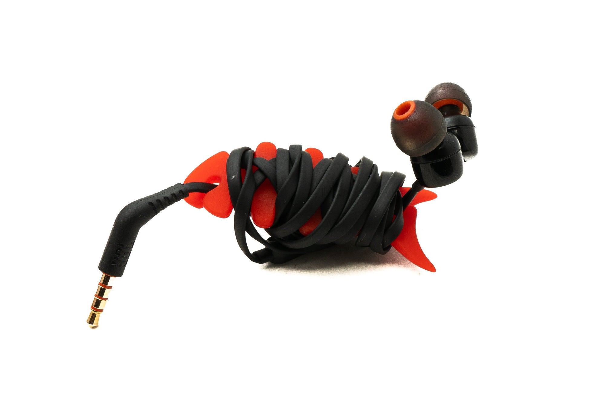 SYSTEM-S Kabelmanager Wrap Kabelaufroller Fischform Silikon Aufwickler Kabelschutz für Kopfhörer in Rot