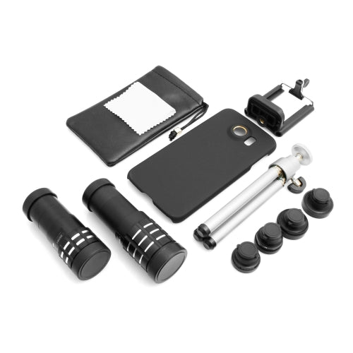 System-S Linsenset Objektiv (20X Mikroskop / Weitwinkel 0.68X (+Macro 1.25X) / Fischauge 180° / 2X / 9X / 12X Telefoto) mit Mini Stativ und Case für Samsung Galaxy S6