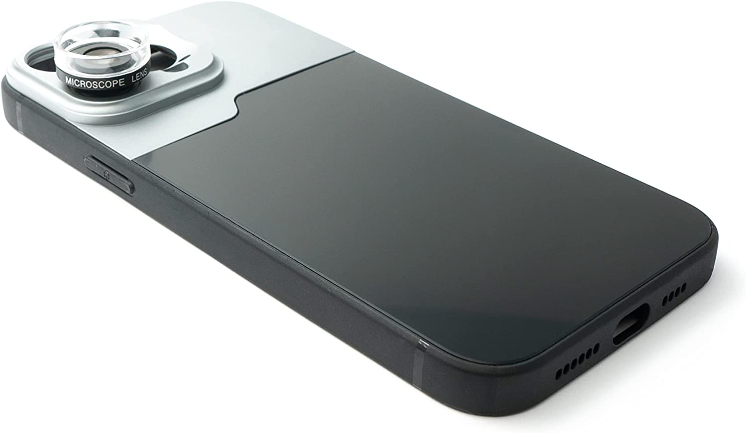 SYSTEM-S Makro Linse 30x Mikroskop Filter mit Hülle in Schwarz für iPhone 14 Pro Max