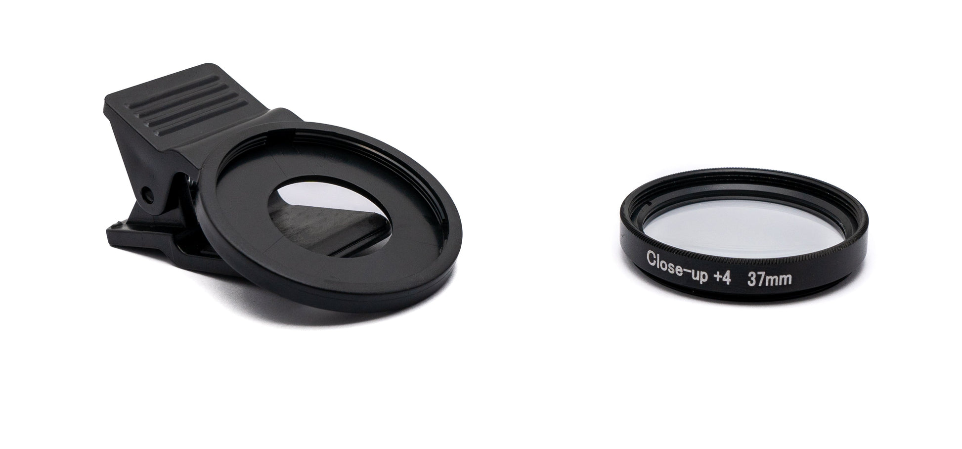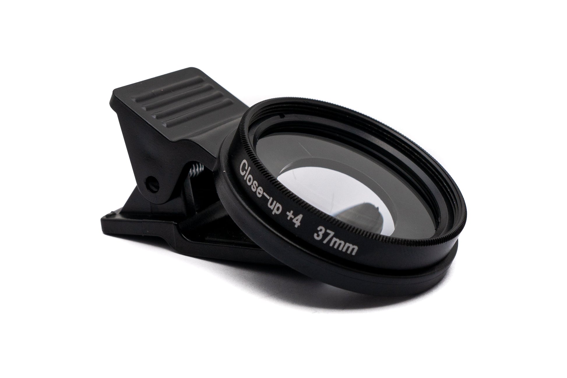 Clip mit anschraubbarer +4-37mm-Makro-Linse für (Smartphone-)Fotografiearbeit