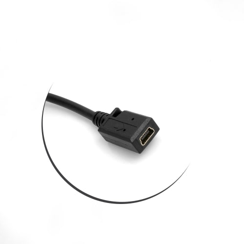 Das Kabel ist ein Plug-and-Play-Adapter mit einem Micro USB Stecker (male), der um 90° nach links gewinkelt ist, und einer Mini USB Buchse (female). Dies ermöglicht eine einfache Installation und Nutzung ohne zusätzliche Treiber oder Konfigurationen.