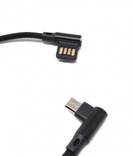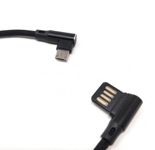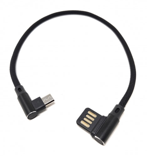 SYSTEM-S Micro USB Kabel Nylon links gewinkelt auf umkehrbarer USB Schnittstelle Typ A in Schwarz 29 cm