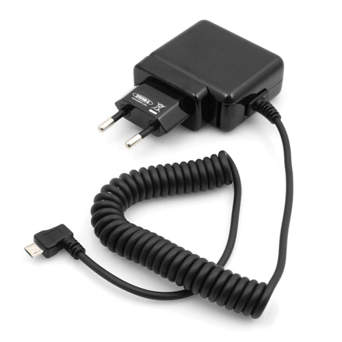 System-S Micro USB Netzteil Ladegerät mit 90° Winkelstecker Rechts & Spiralkabel 30 - 135 cm 2A