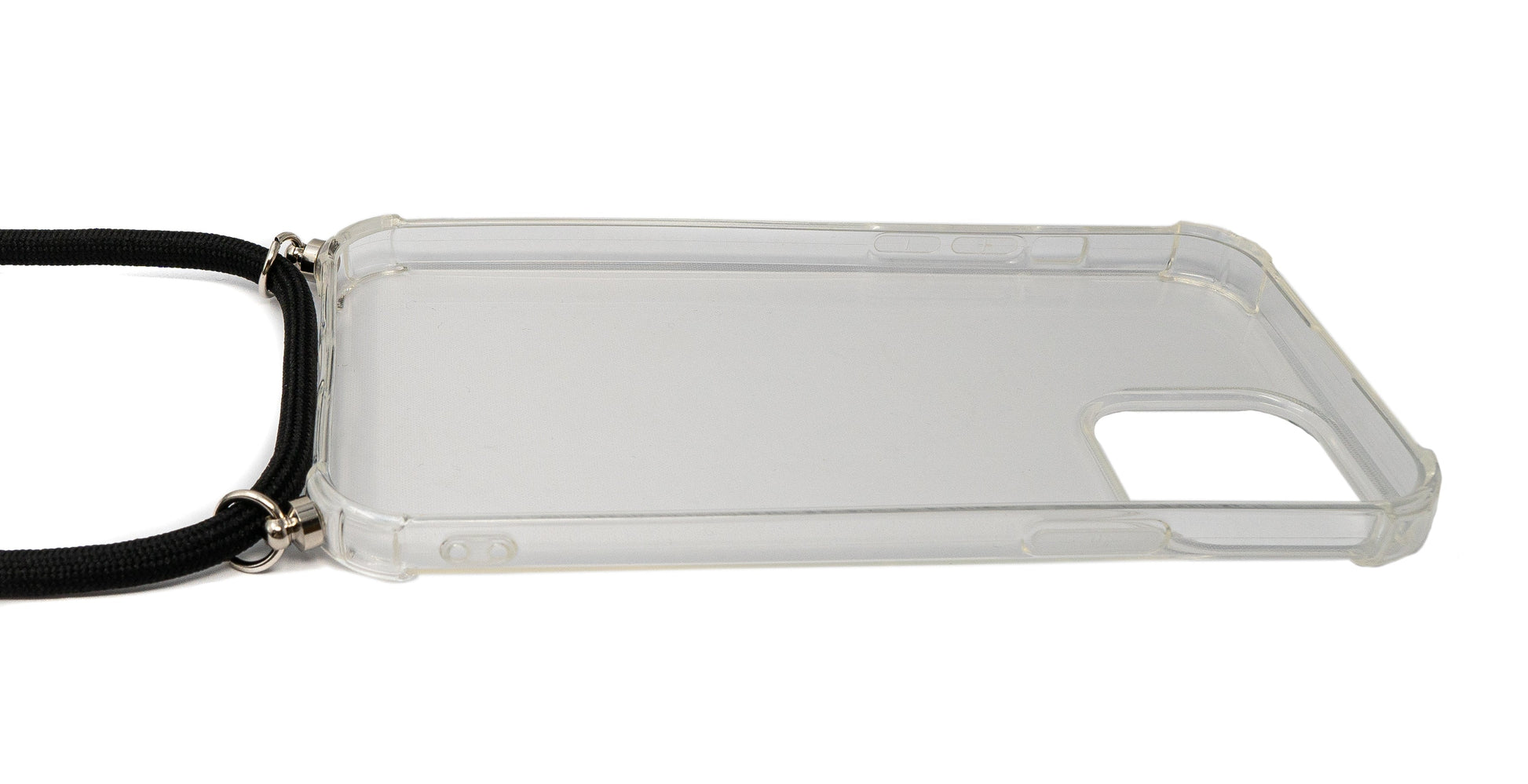 Einstellbares schwarzes Halsband zum Tragen des Smartphones um den Hals.