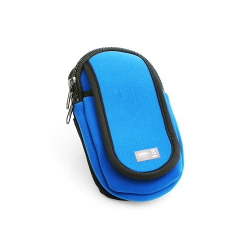 System-S Sportarmband Fitness Laufen Biking Armband Neopren Tasche Hülle Cover mit Reißverschluss und Extrafach mit Klettverschluss für Smartphone andere Geräte blau