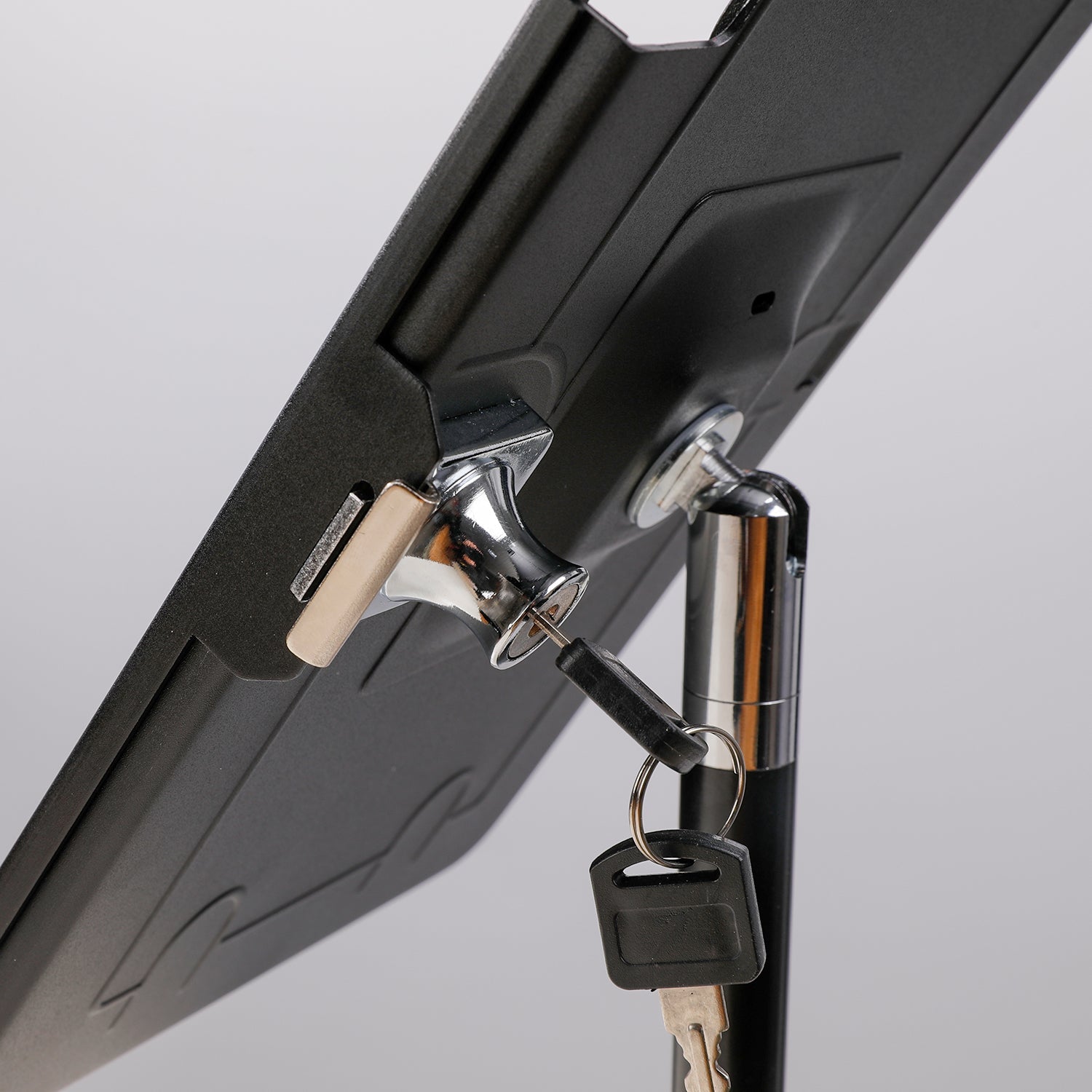 - Sichere Befestigung: Die Halterung verfügt über ein Schloss, das Ihr iPad Pro 10,5" sicher fixiert und vor Diebstahl schützt. Die mitgelieferten Schlüssel ermöglichen eine einfache Bedienung.