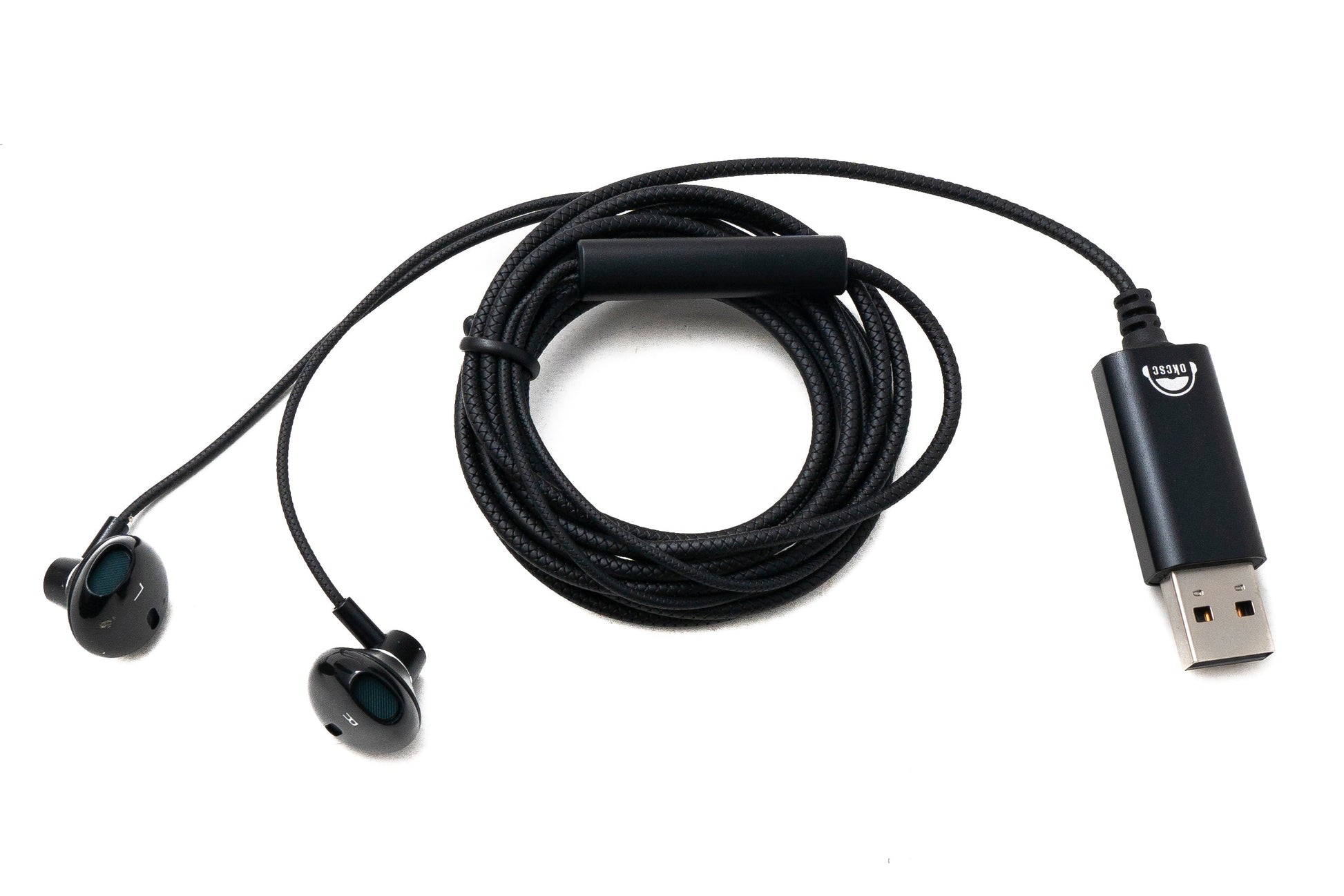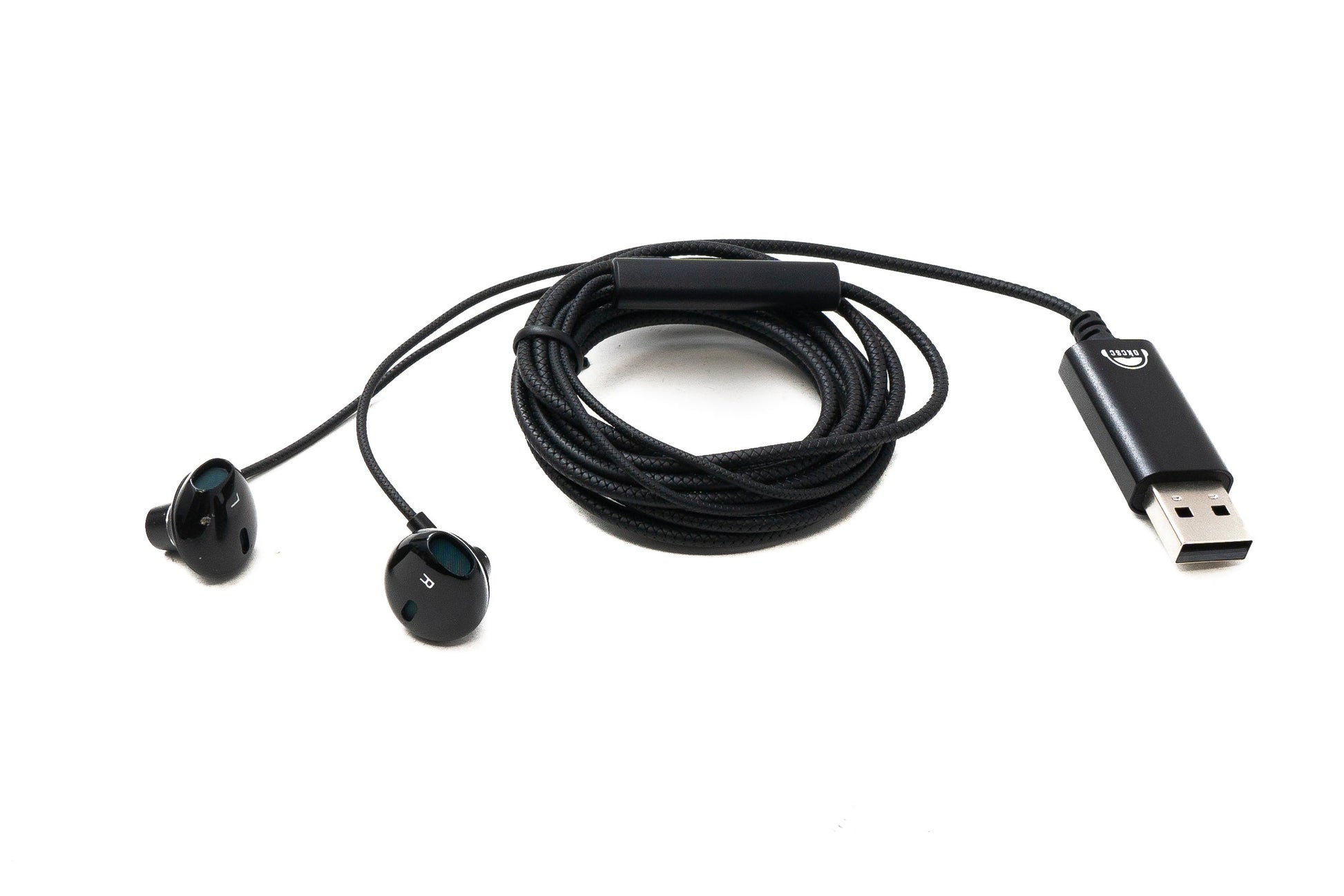SYSTEM-S Stereo In Ear Noise Cancelling Kopfhörer 2 m USB 2.0 Lautstärkeregler Mikrofon Tasche Schwarz