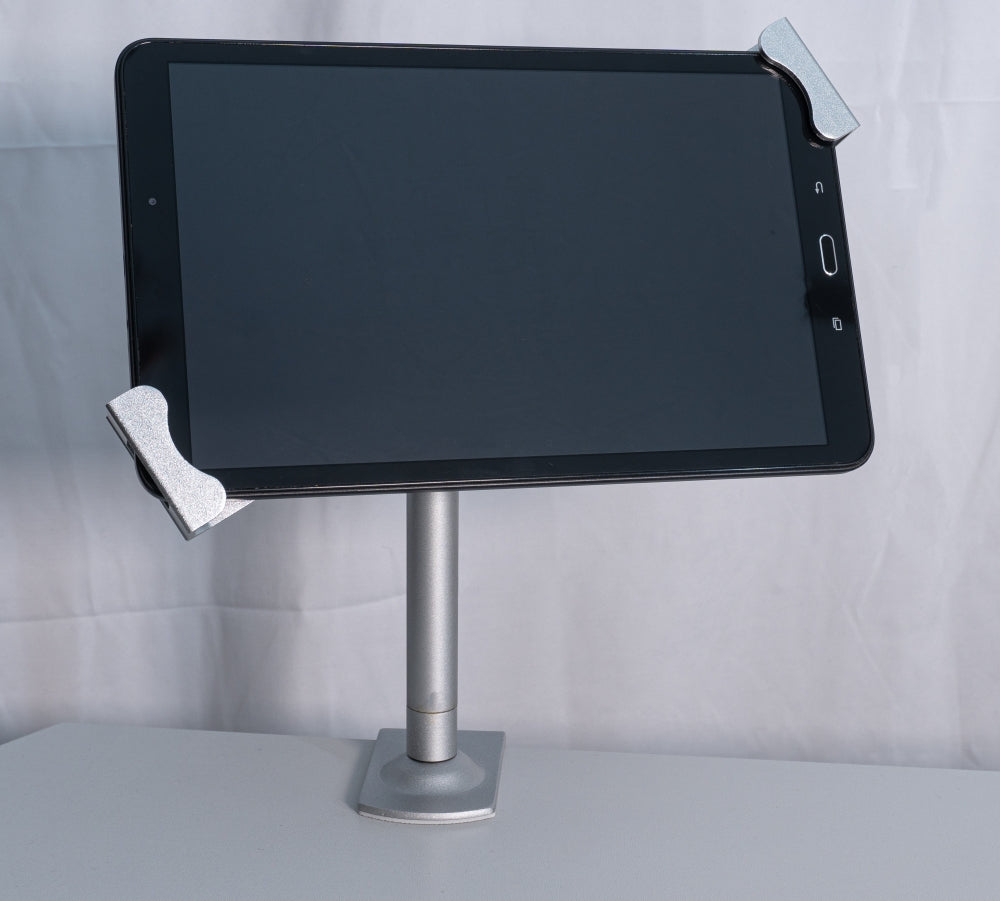 Diese Tischhalterung von SYSTEM-S bietet eine zuverlässige Lösung für die sichere Montage und flexible Positionierung von Tablets in verschiedenen Umgebungen wie Büros, Konferenzräumen oder öffentlichen Einrichtungen.
