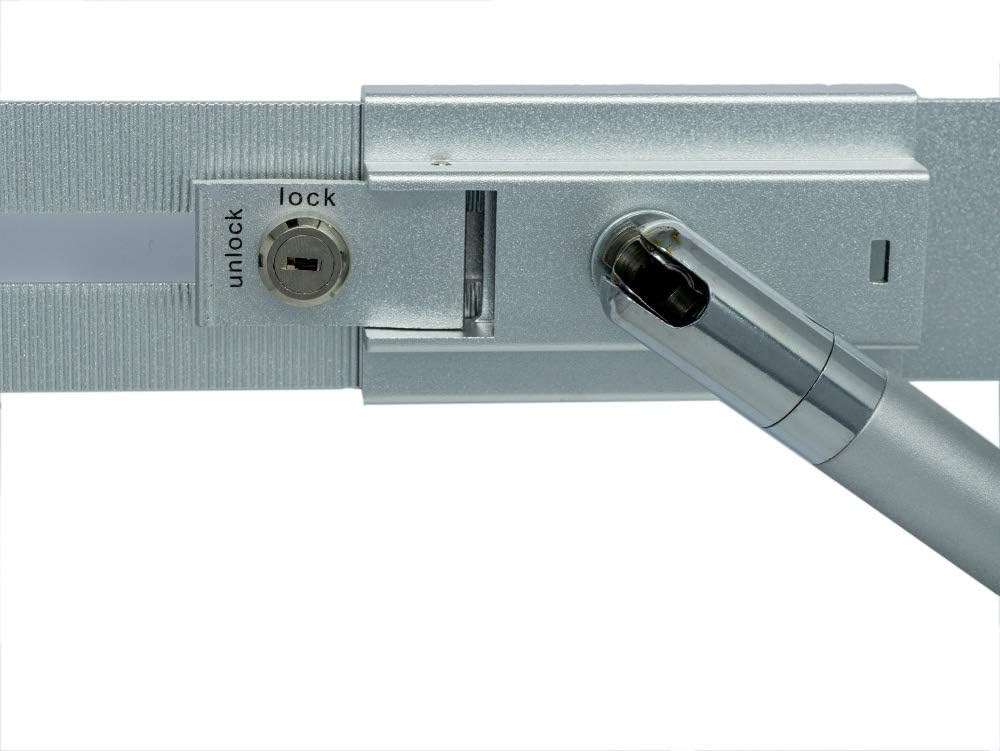 - Abschließbare Halterung: Sicherheitsfunktion durch ein Schloss, ideal für den Einsatz in öffentlichen Bereichen oder geschäftlichen Umgebungen.