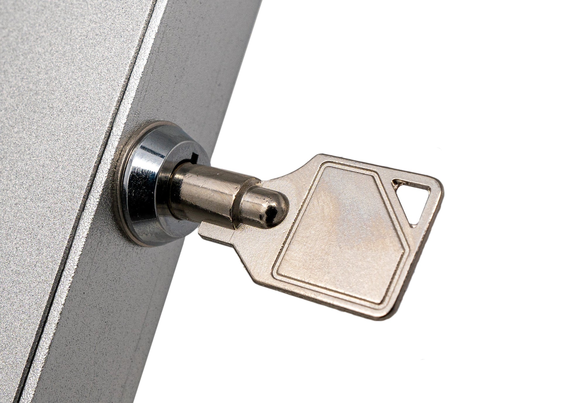 Lieferumfang: Im Lieferumfang enthalten sind die abschließbare Halterung, Montagezubehör und ein Schlüssel für das Schloss. Das Produkt wird in einer Poly Bag + Karton Verpackung geliefert.