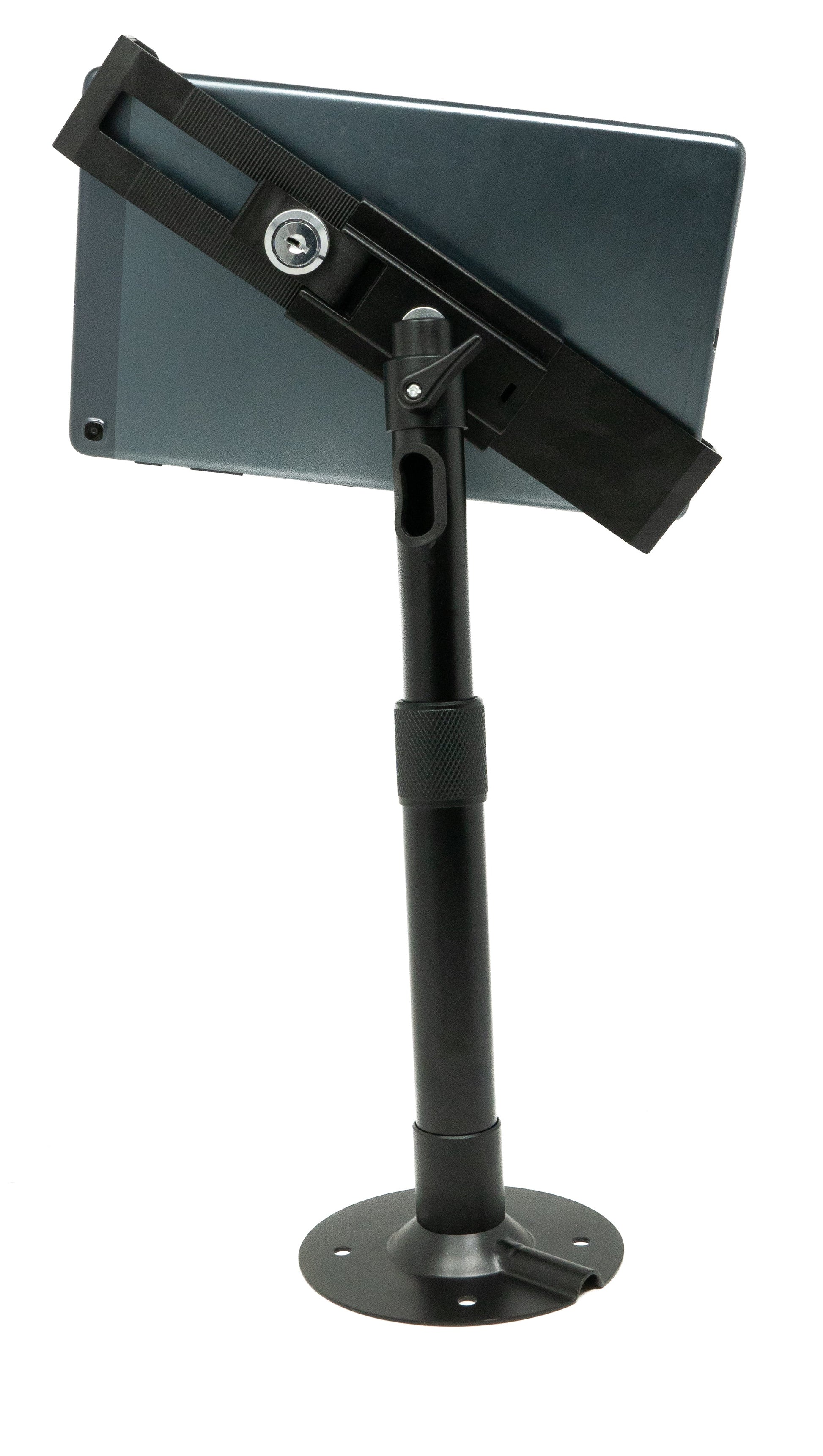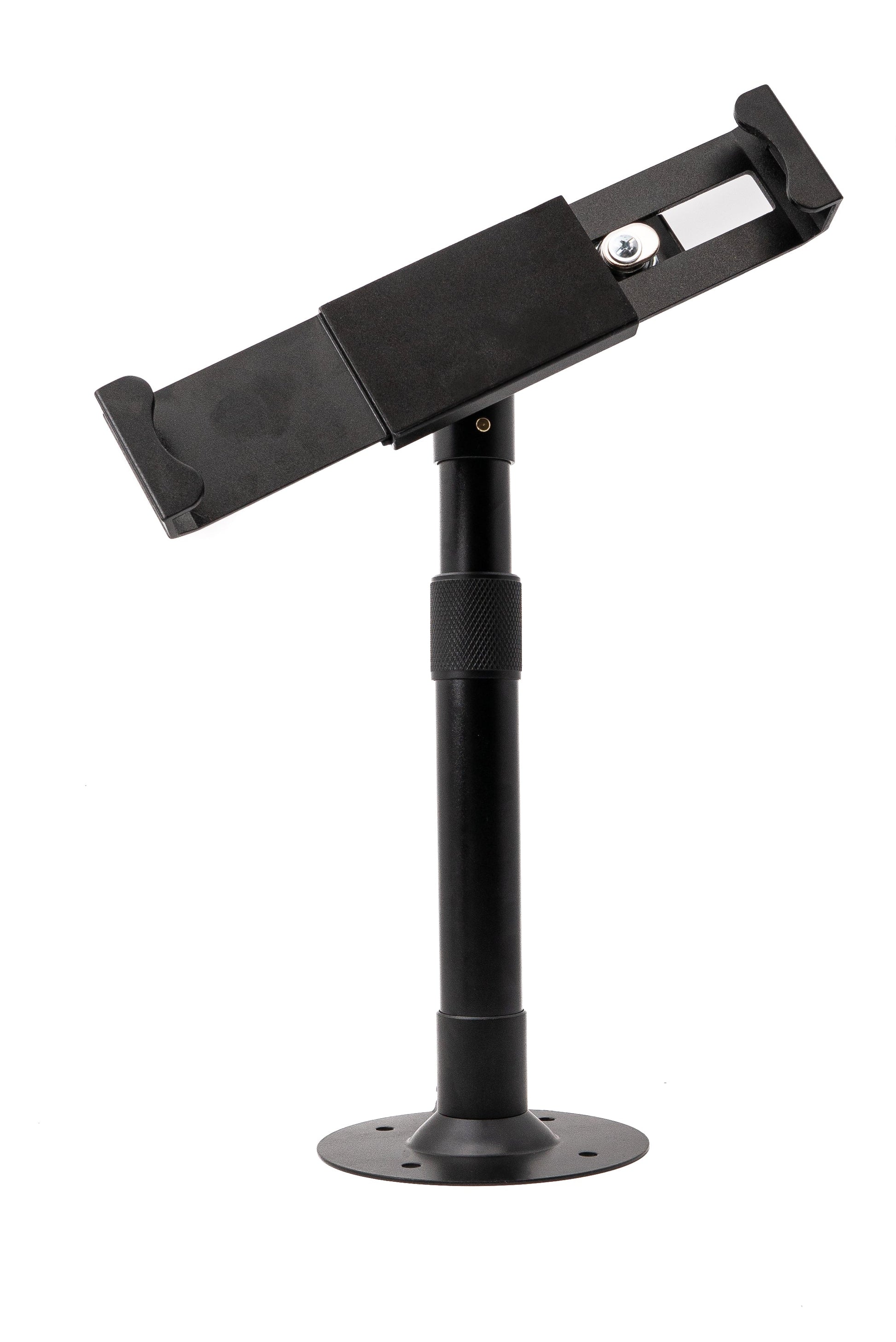 Die abschließbare Halterung von System-S bietet eine sichere und vielseitige Lösung zum Platzieren von Tablets auf Tischen und anderen Oberflächen. Mit einem höhenverstellbaren Halterarm (ca. 37 bis 51 cm), der um 360° bewegbar und um 160° neigbar ist, ermöglicht diese Halterung maximale Flexibilität bei der Positionierung Ihres Tablets. In elegantem Schwarz gehalten, passt sie perfekt zu verschiedenen Einrichtungsstilen. Geeignet für Tablets mit einer Bildschirmdiagonale von 8.0" bis 11.0".