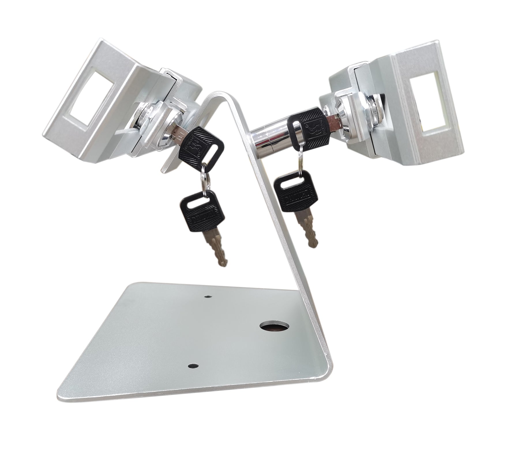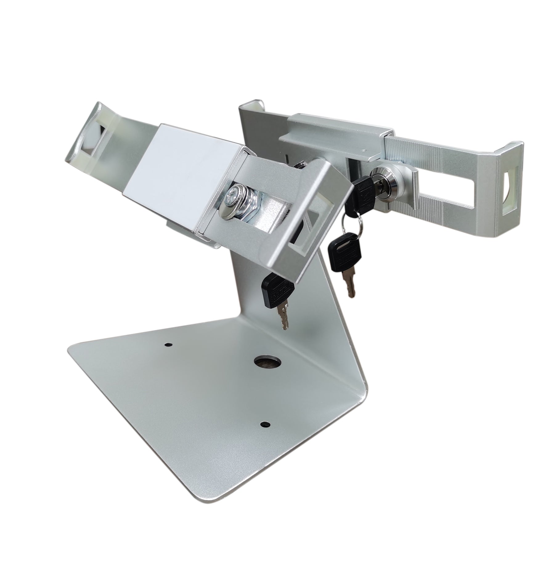 Diese Halterung in trendigem Design ist für Tablets konzipiert und integriert Effizienz und Sicherheit für Ihre Messeschau. Die einzelnen Neigungswinkel können um ca. 60° angepasst und die Halterungen um 360° gedreht werden. Die eingebauten Schlösser verhindern Ladendiebstähle. Die Halterung eignet sich ideal für Messen, Ausstellungen, Ladenflächen und vieles mehr.