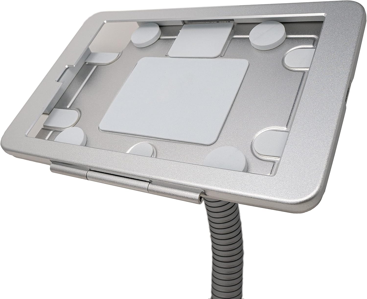 Abschließbare Halterung: Die Halterung kann sicher auf Tischen und horizontalen Oberflächen platziert werden und ist abschließbar, um Ihr iPad zu schützen.