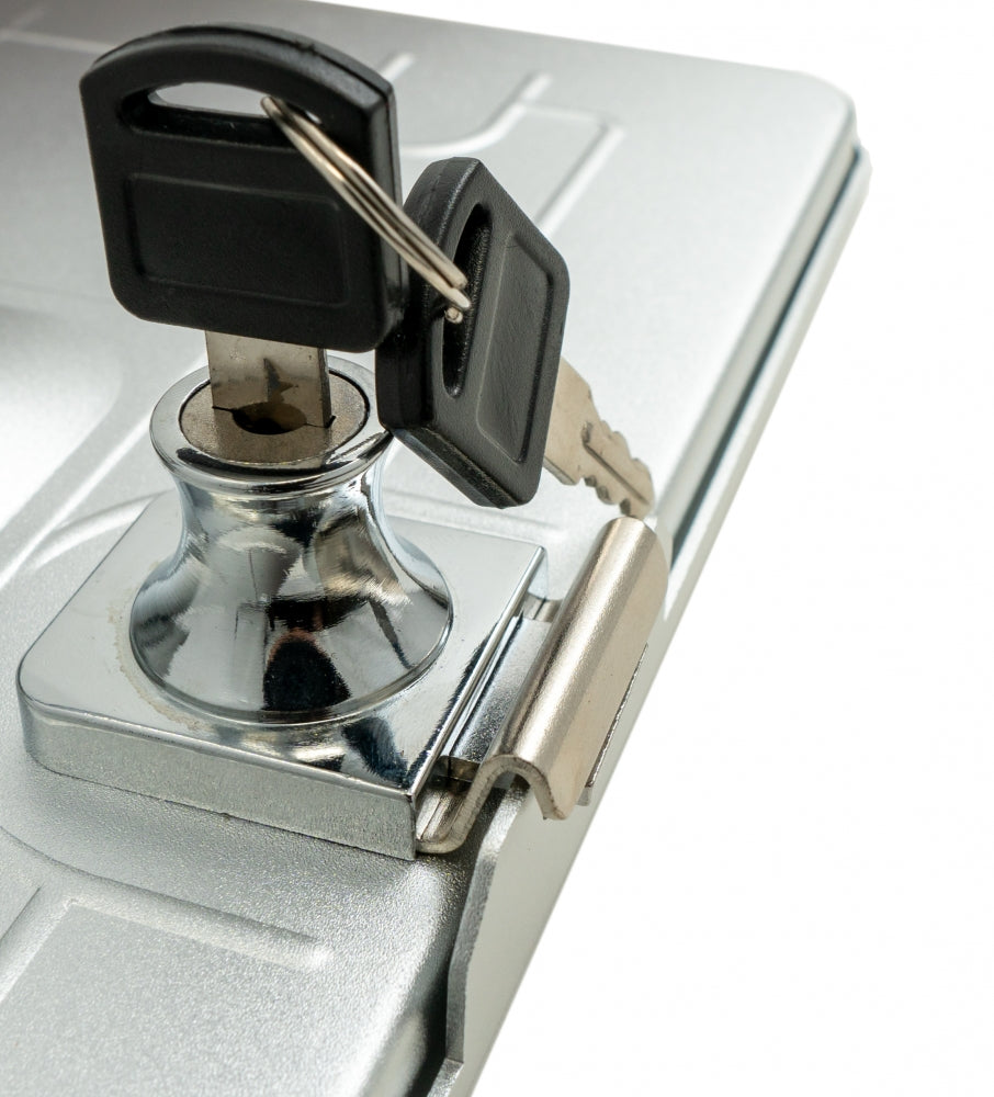 - Abschließbare Halterung: Integriertes Schloss zum Schutz vor Diebstahl und Sicherung der iPads während öffentlicher Veranstaltungen.
