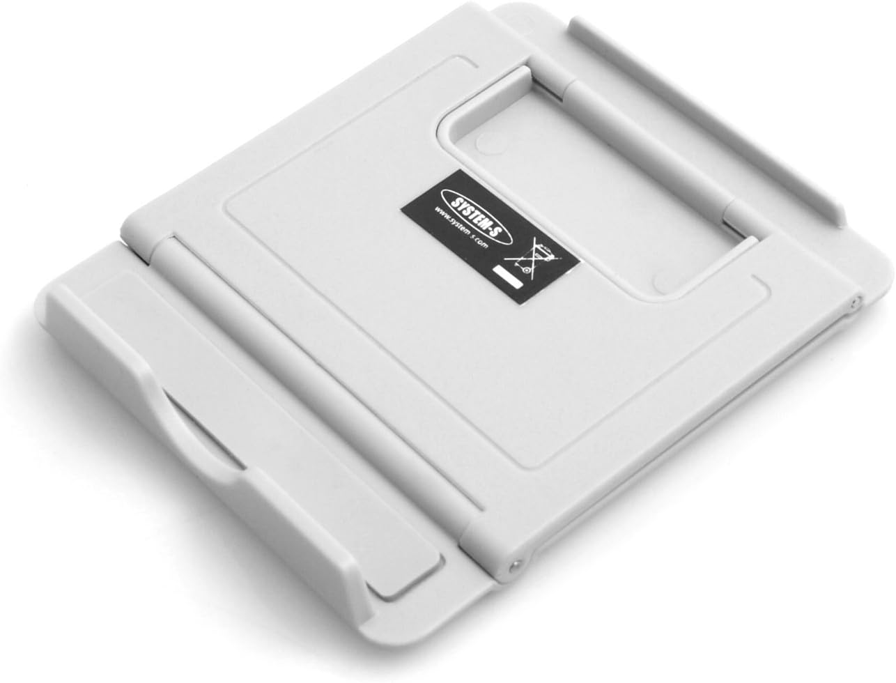 System-S Universal Klappständer Standfuss Tablet Tisch Halterung 6 Stufen Neigung einstellbar 60-75° für Tablet PC Smartphone und andere Geräte (bis 1,4 cm) grau