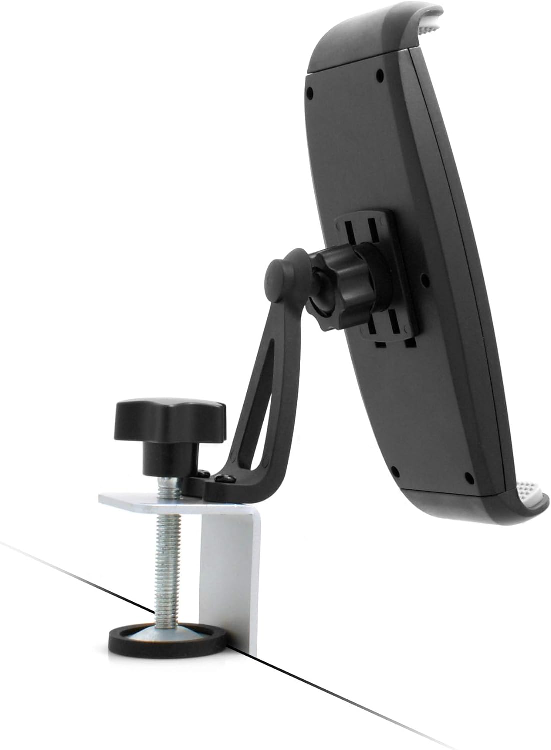 Sichere Schraubklemme: Die Halterung verfügt über eine Schraubklemme, die fest an der Tischplatte befestigt werden kann. Dadurch sitzt die Halterung sicher und stabil, ohne zu verrutschen.