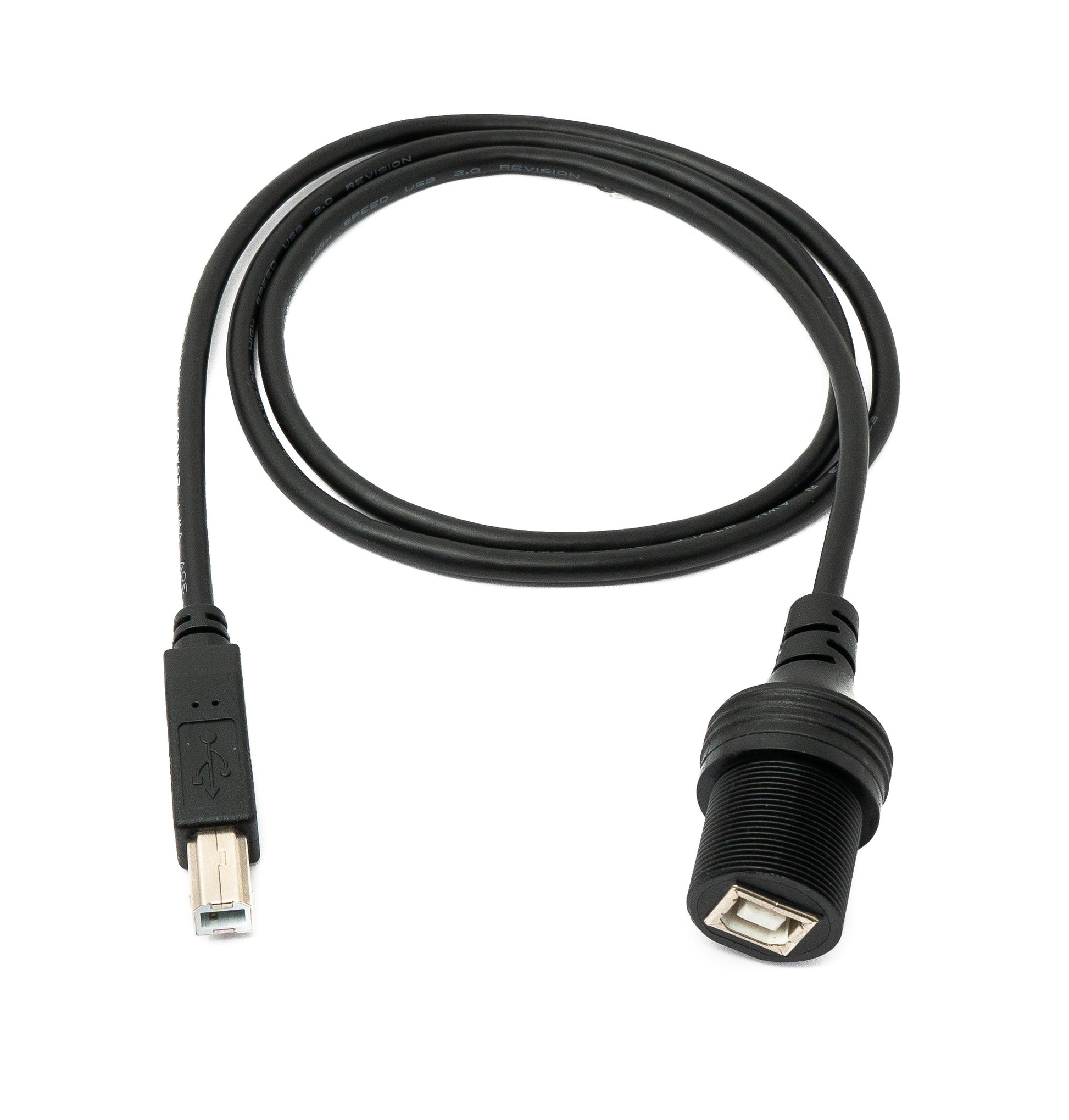 SYSTEM-S USB 2.0 Kabel 100 cm Typ B Stecker zu Buchse Bulkhead Wasserfest in Schwarz
