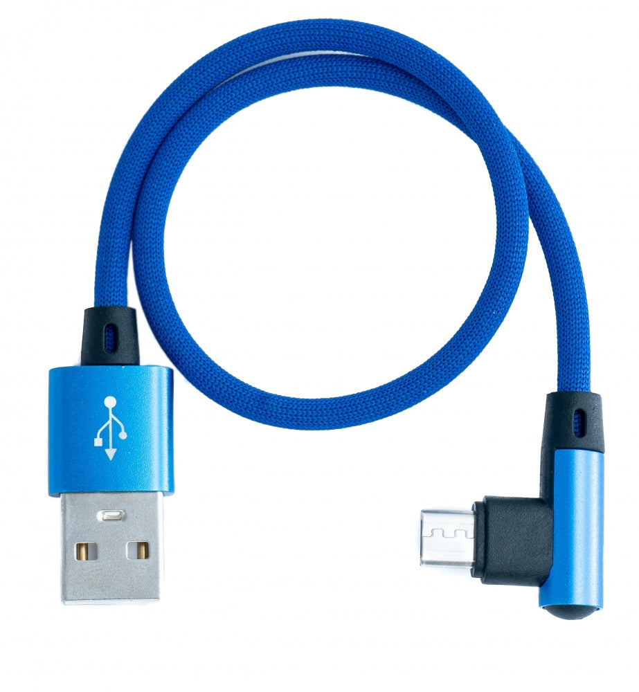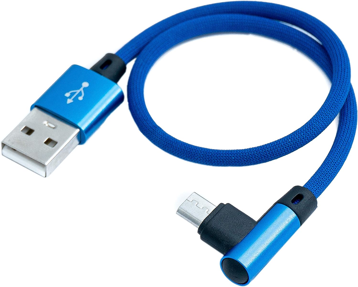 - 1x USB 2.0 Kabel 25cm Micro B Stecker zu 2.0 A Stecker Winkel geflochten in Blau