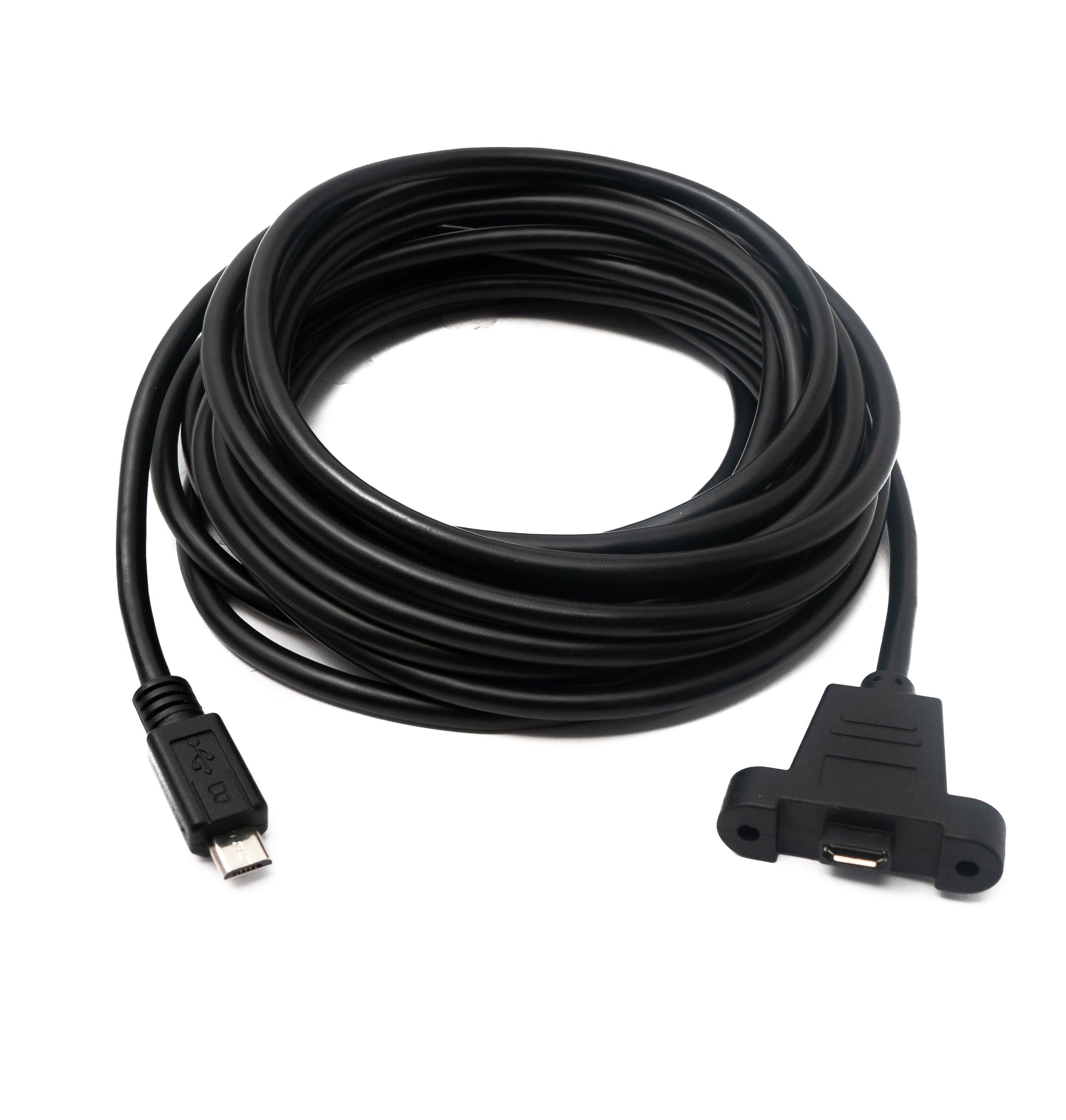 SYSTEM-S USB 2.0 Kabel 5 m Micro B Stecker zu Buchse Schraube in Schwarz