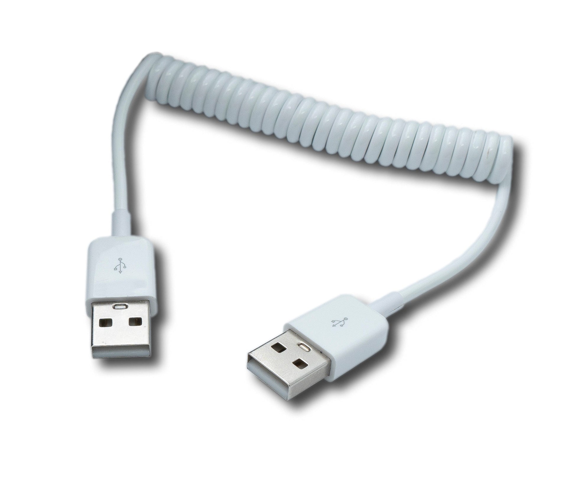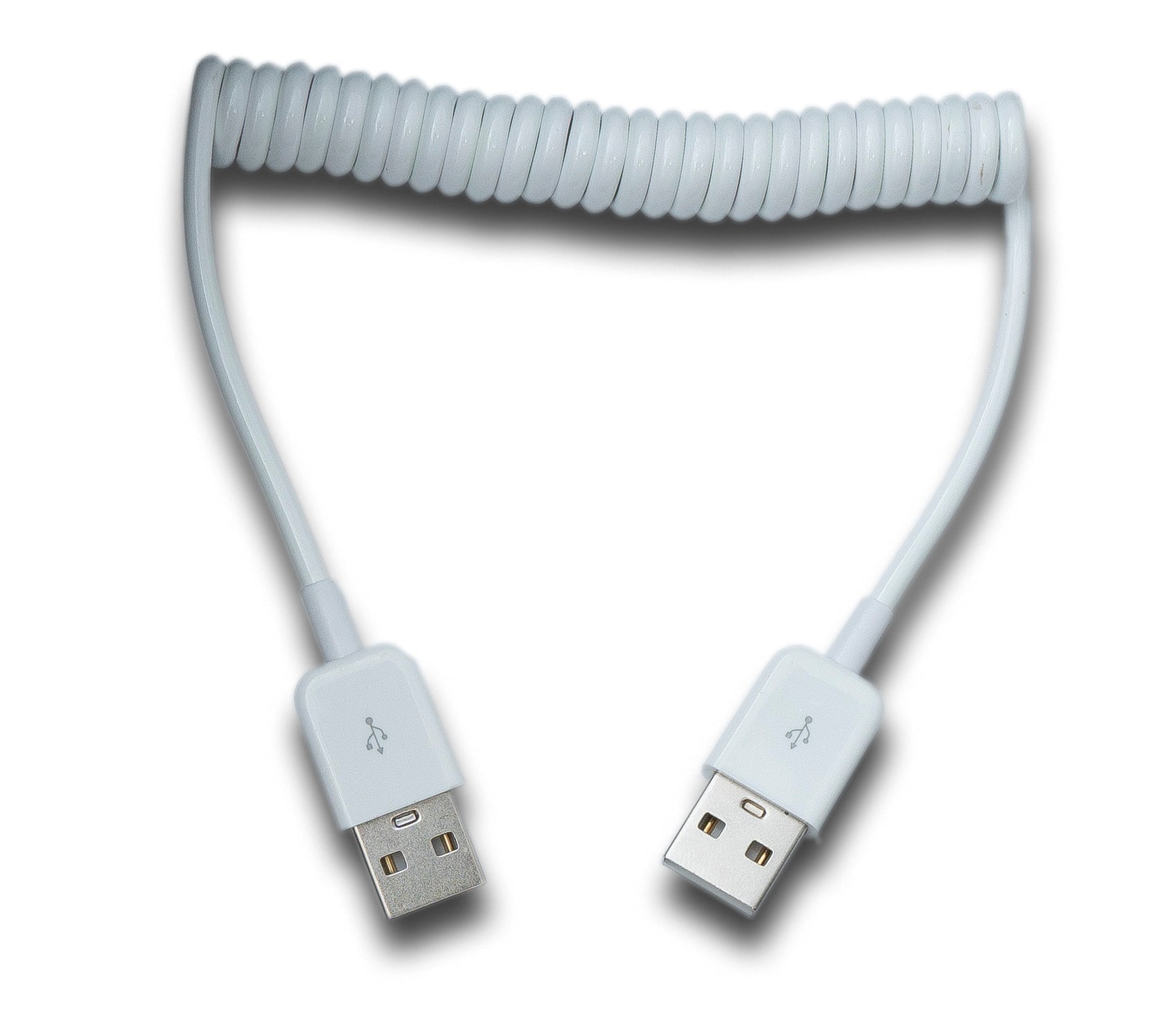 SYSTEM-S USB 2.0 Kabel 90 cm Typ A Stecker zu Stecker Spirale ausziehbar in Weiß