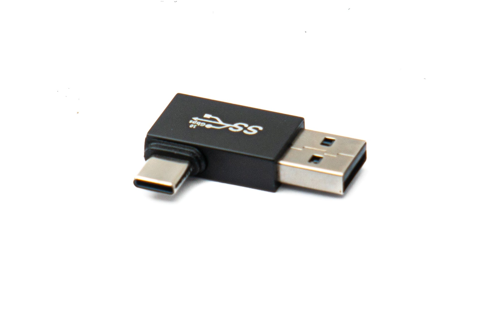 SYSTEM-S USB 3.0 Adapter Typ A Stecker zu 3.1 C Stecker unidirektional Winkel Left Angled Kabel 10 Gbit/s 100W