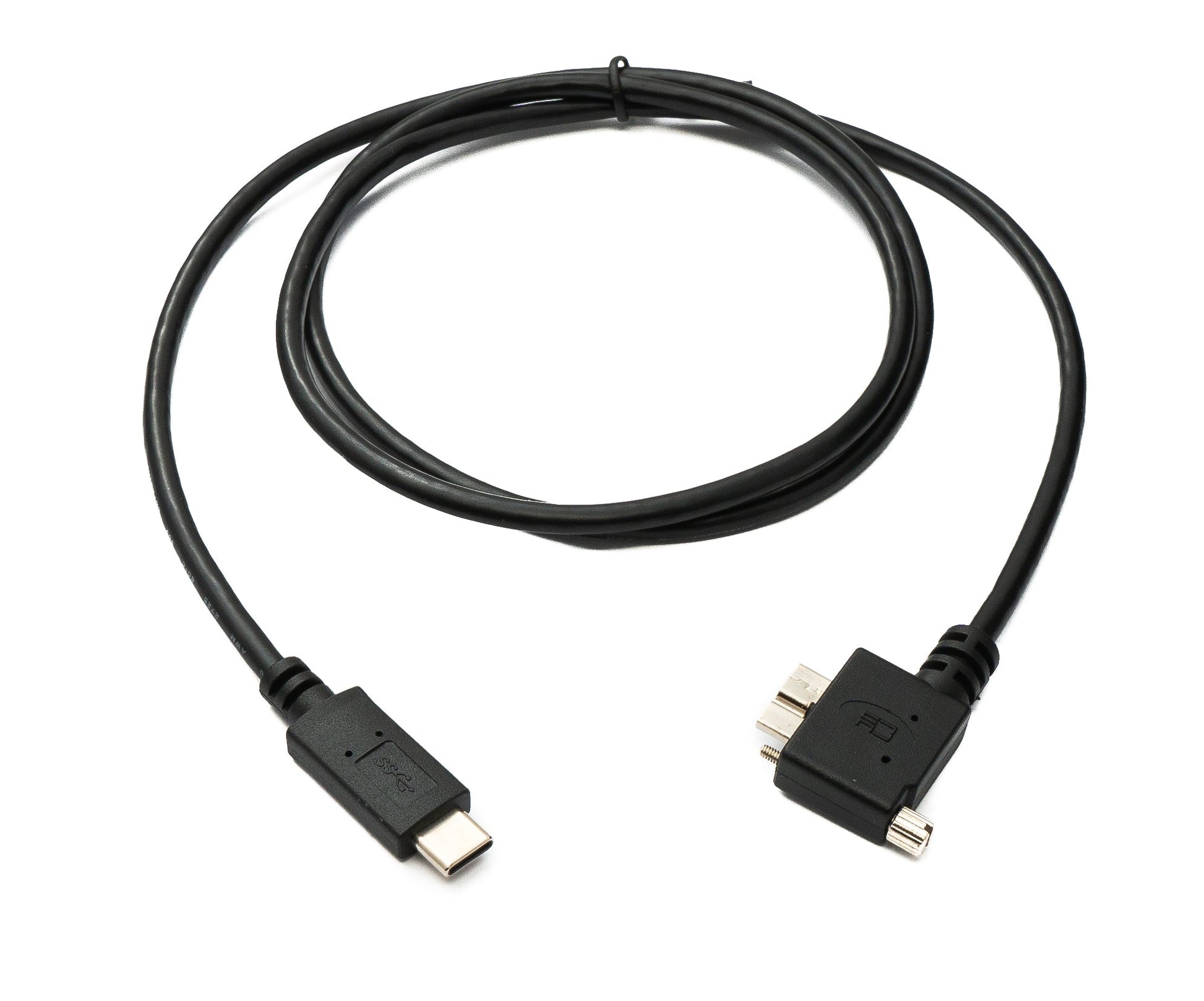SYSTEM-S USB 3.0 Kabel 100 cm Micro B Stecker zu 3.1 Typ C Stecker Winkel Left Angled Panel Mount Schraube