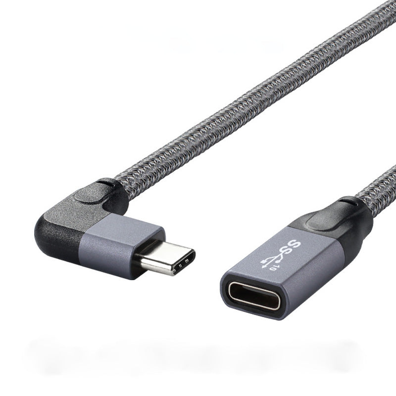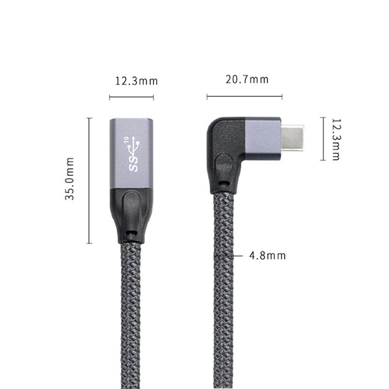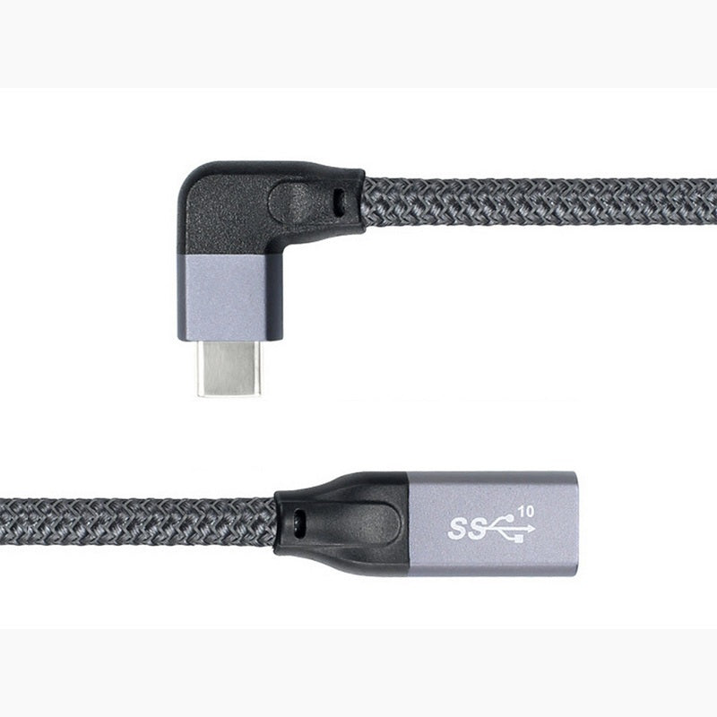 SYSTEM-S USB 3.1 Gen 2 Kabel 100cm Typ C Stecker zu Buchse geflochten Winkel Grau