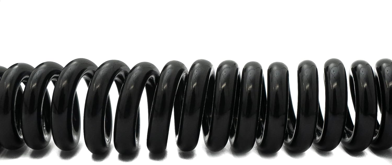 Diese Beschreibung bezieht sich auf ein USB-Kabel in Schwarz mit einem Spiralkabel. Es hat eine Hi-Speed-Übertragungsrate von 480 Mbit/s und eine Nennspannung von 5 V mit einer maximalen Stromstärke von 2,4 A. Die Kabellänge kann sich auf etwa 120 cm erstrecken.