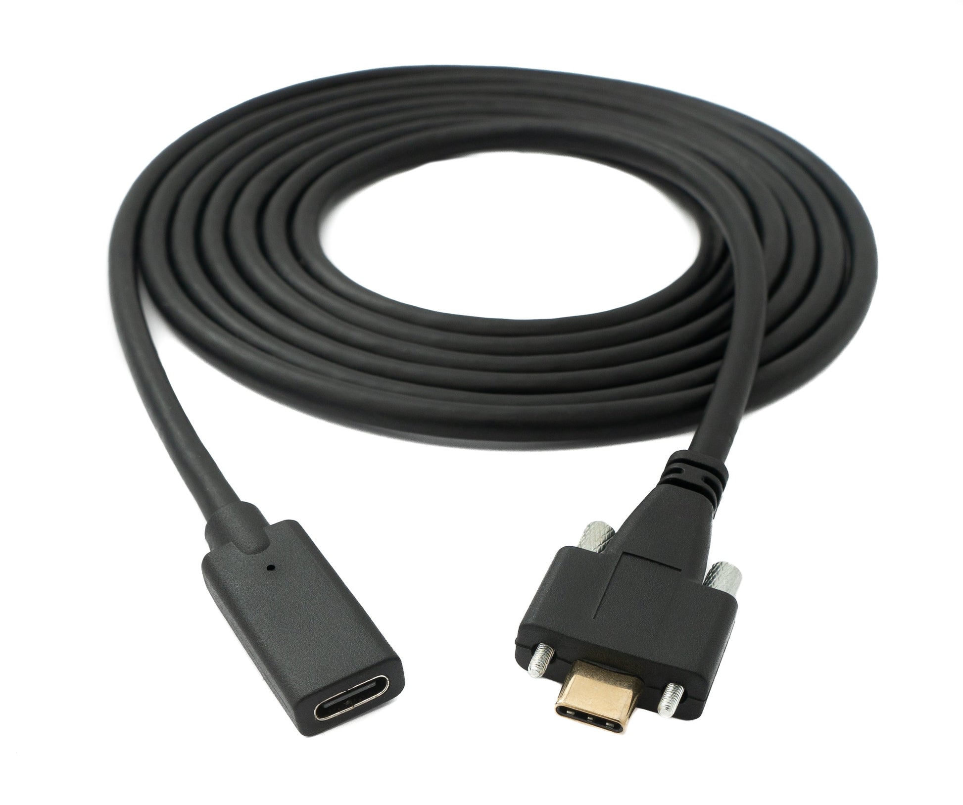 SYSTEM-S USB 3.1 Kabel 2 m Typ C Stecker zu Buchse Schraube in Schwarz