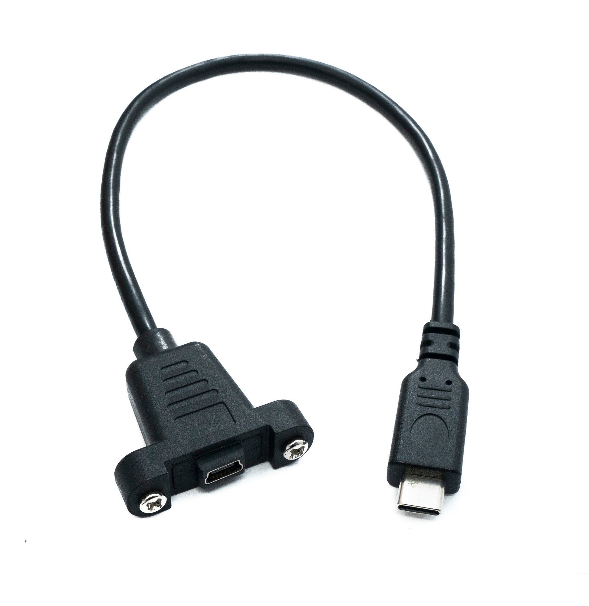 SYSTEM-S USB 3.1 Kabel 30 cm Typ C Stecker zu 2.0 Mini B Buchse 5 Pin Panel Mount 28 mm