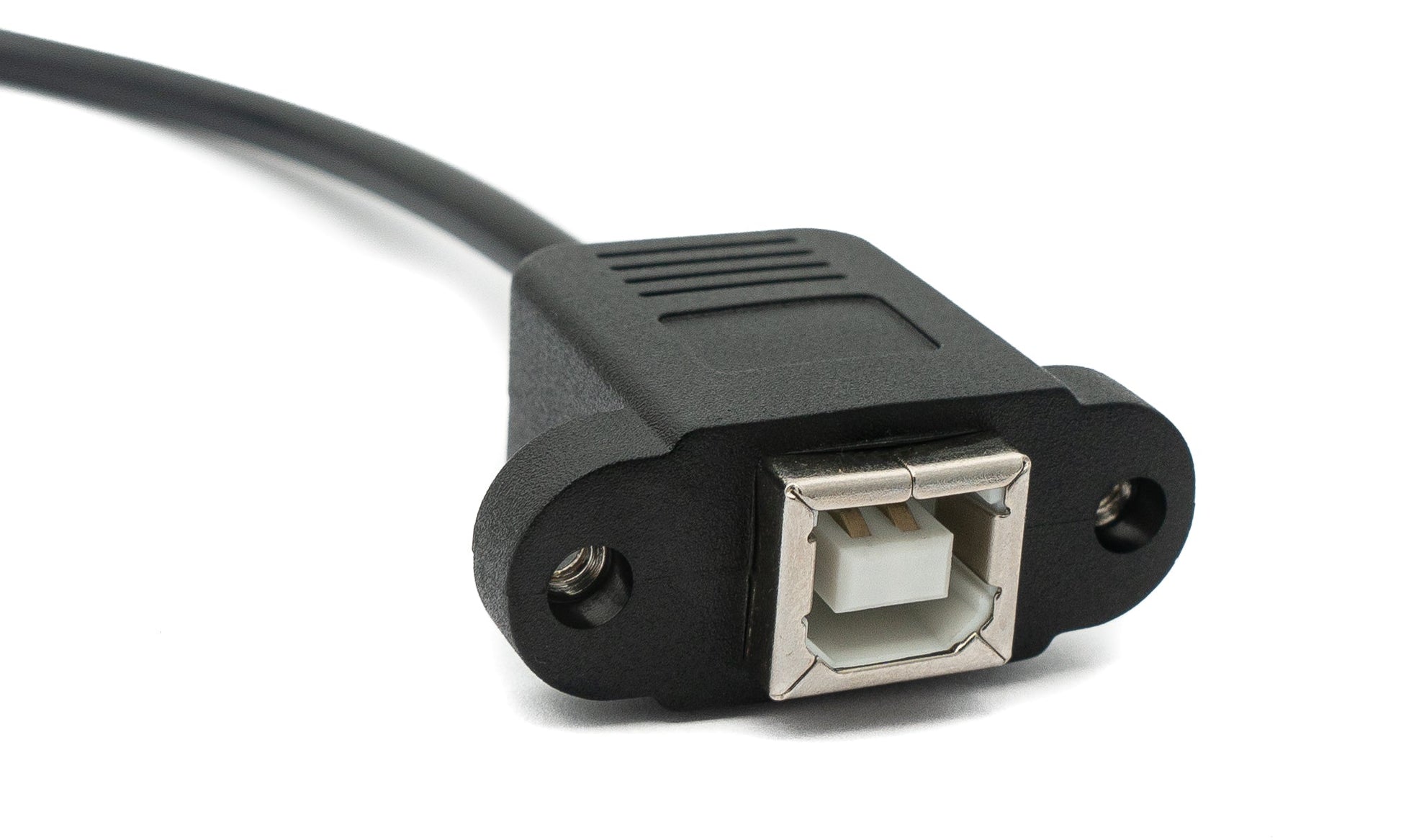 - Maße der Typ B Buchse: 3,3 x 3,5 x 1,5 cm (L x B x H).