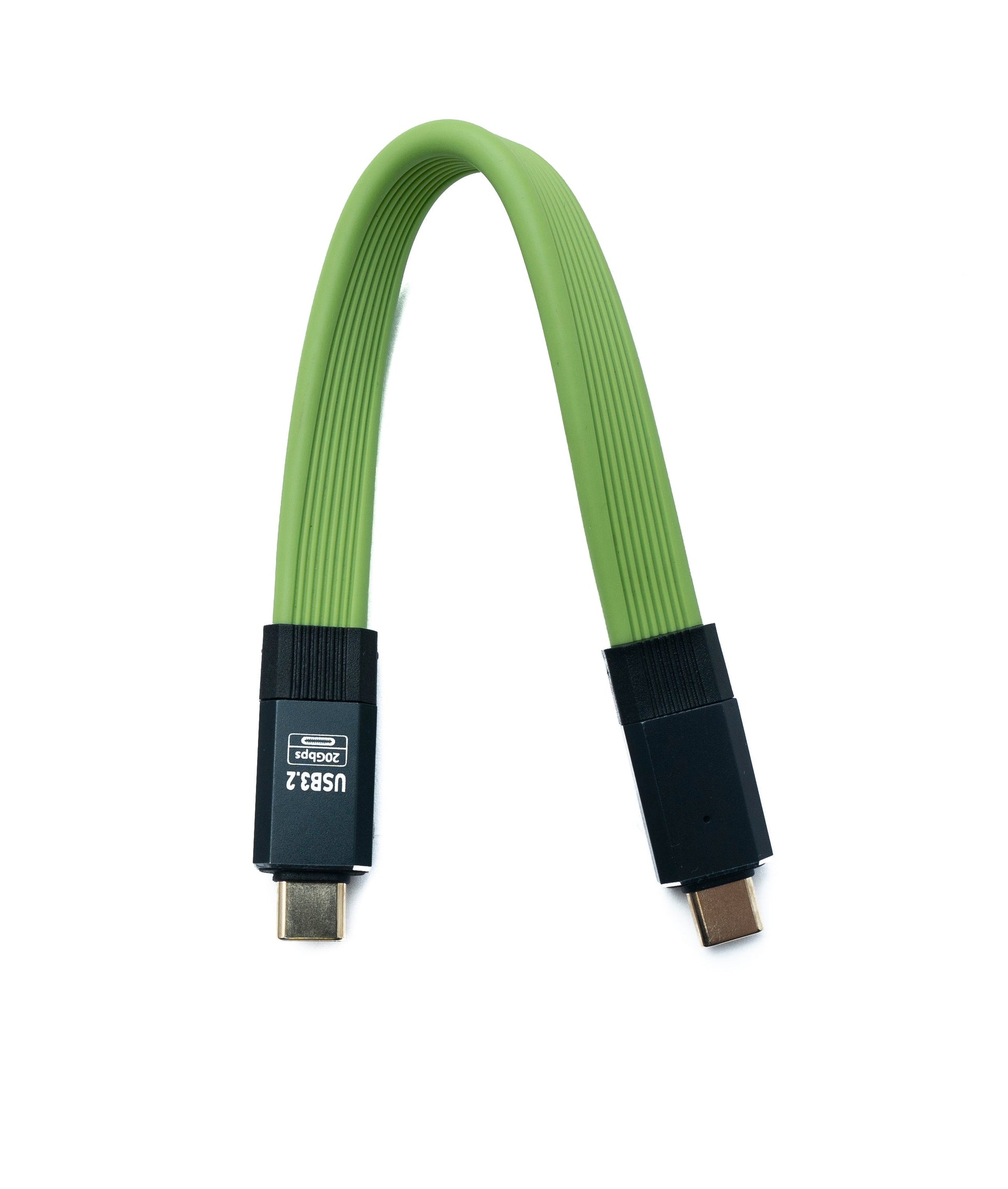 SYSTEM-S USB 3.2 Gen 2 Kabel 20 cm Typ C Stecker zu Stecker Flachkabel Grün 20 Gbit/s 100 W