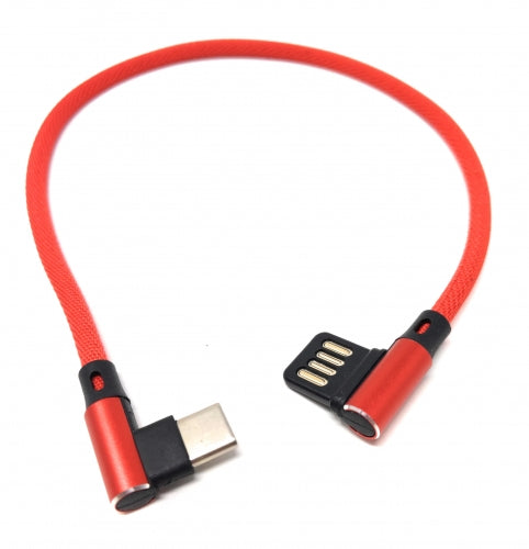 SYSTEM-S USB Typ C 3.1 Nylon Kabel auf umkehrbarer USB Schnittstelle Typ A 2.0 90° Grad gewinkelt in Rot 29 cm