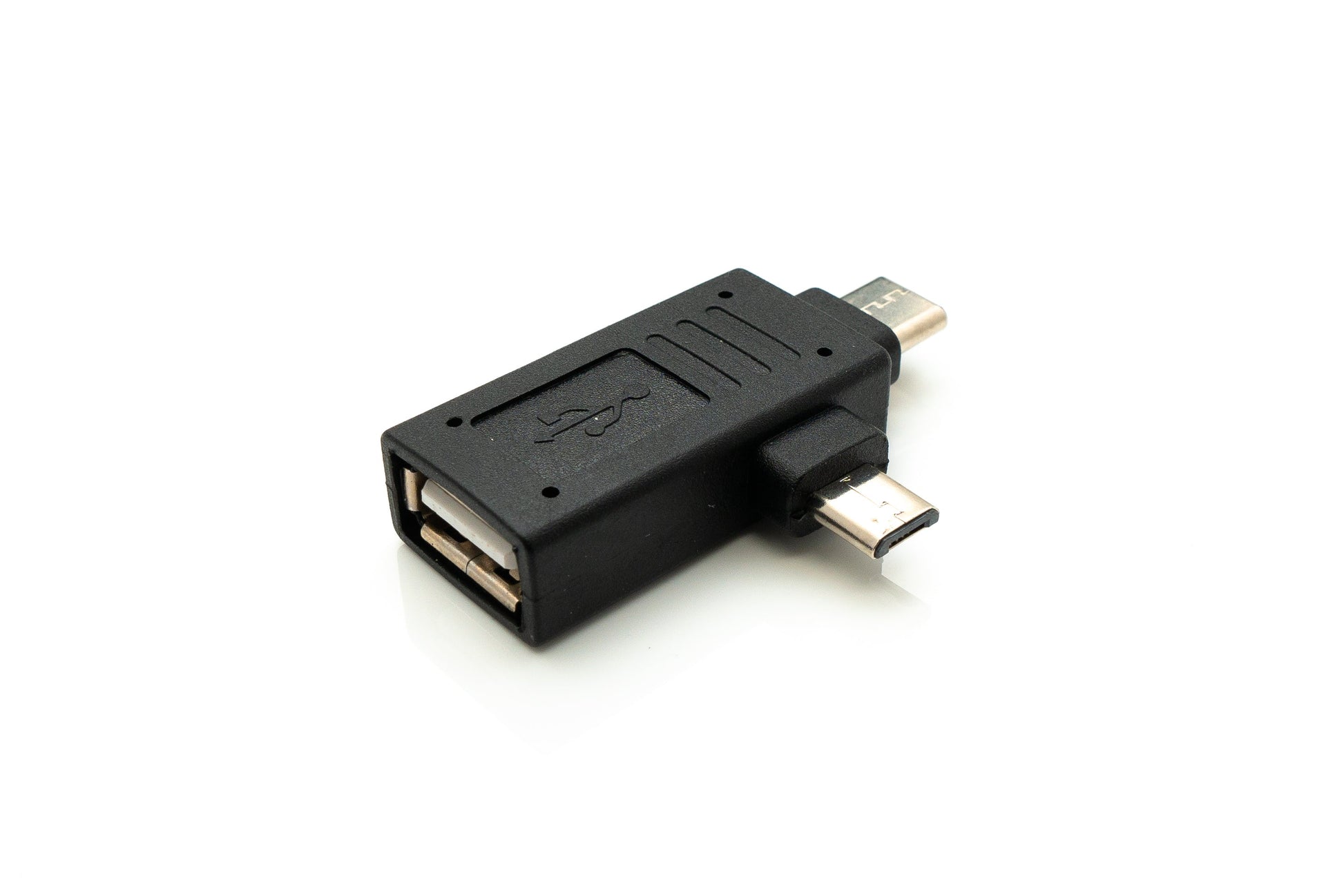 SYSTEM-S USB Y 3.1 Adapter Typ C Stecker & 2.0 Micro B Stecker zu A Buchse Kabel in Schwarz