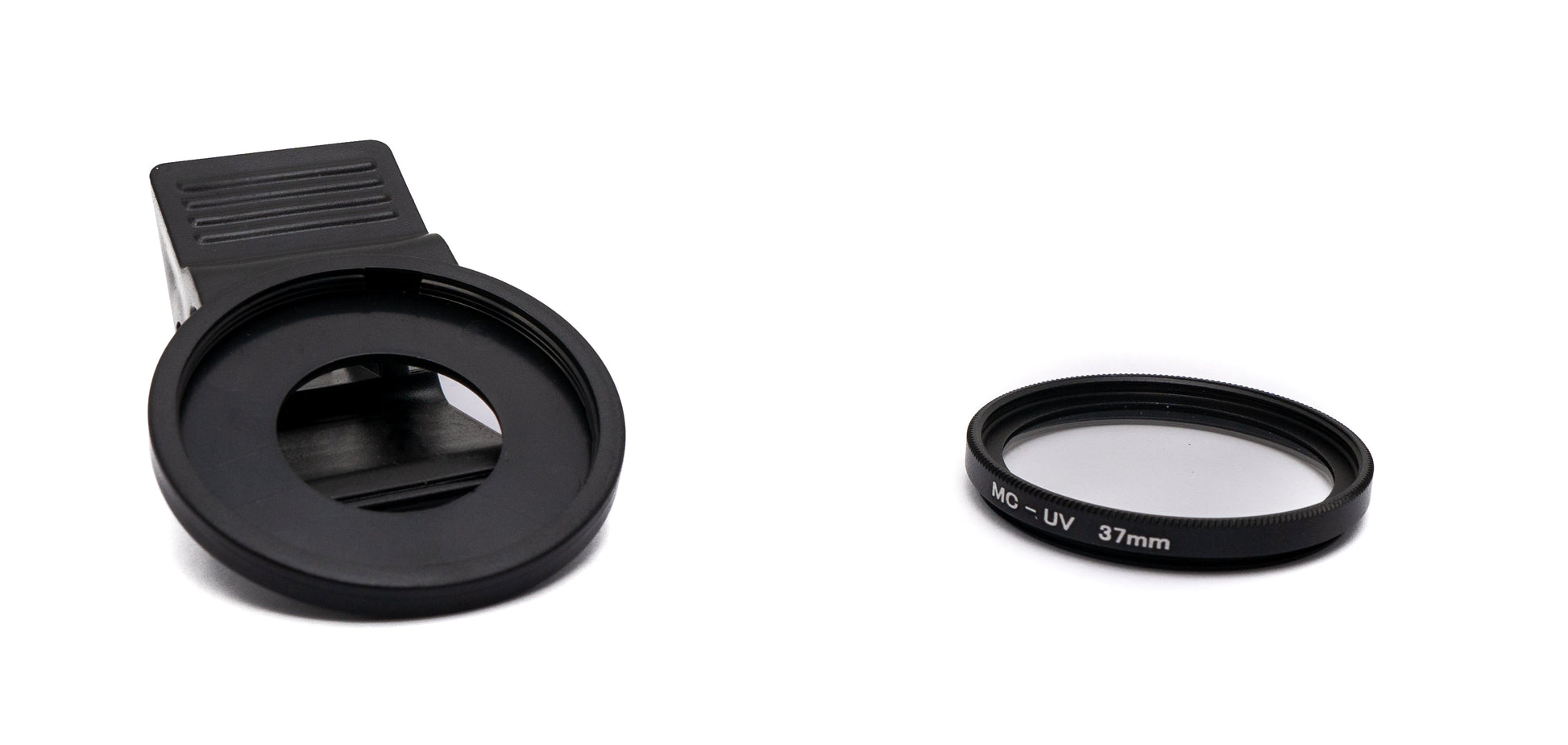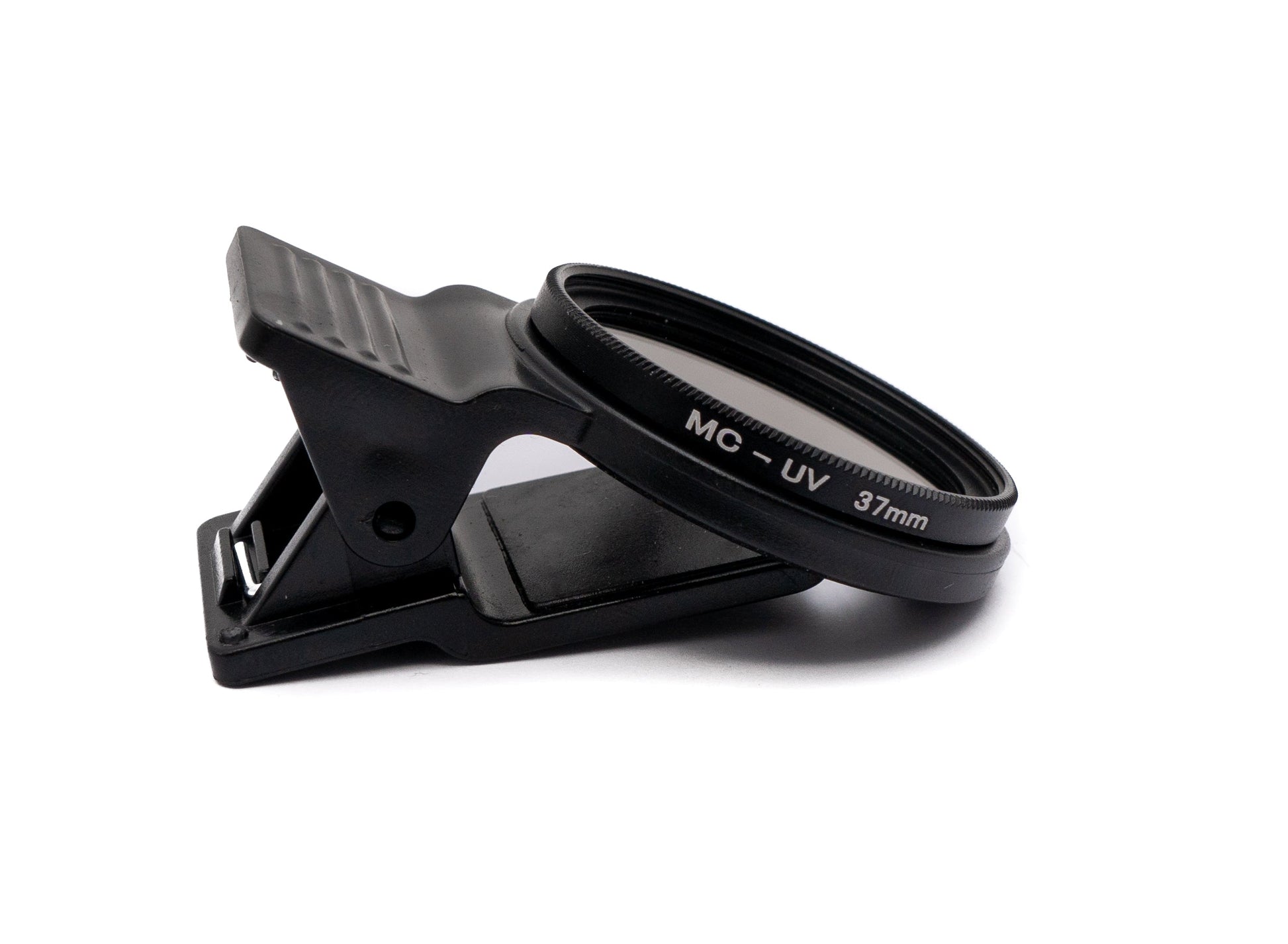 Der Filter wird mit einem Clip geliefert, der einfach auf das Smartphone-Objektiv gesteckt wird. Der Clip ist aus Kunststoff gefertigt.