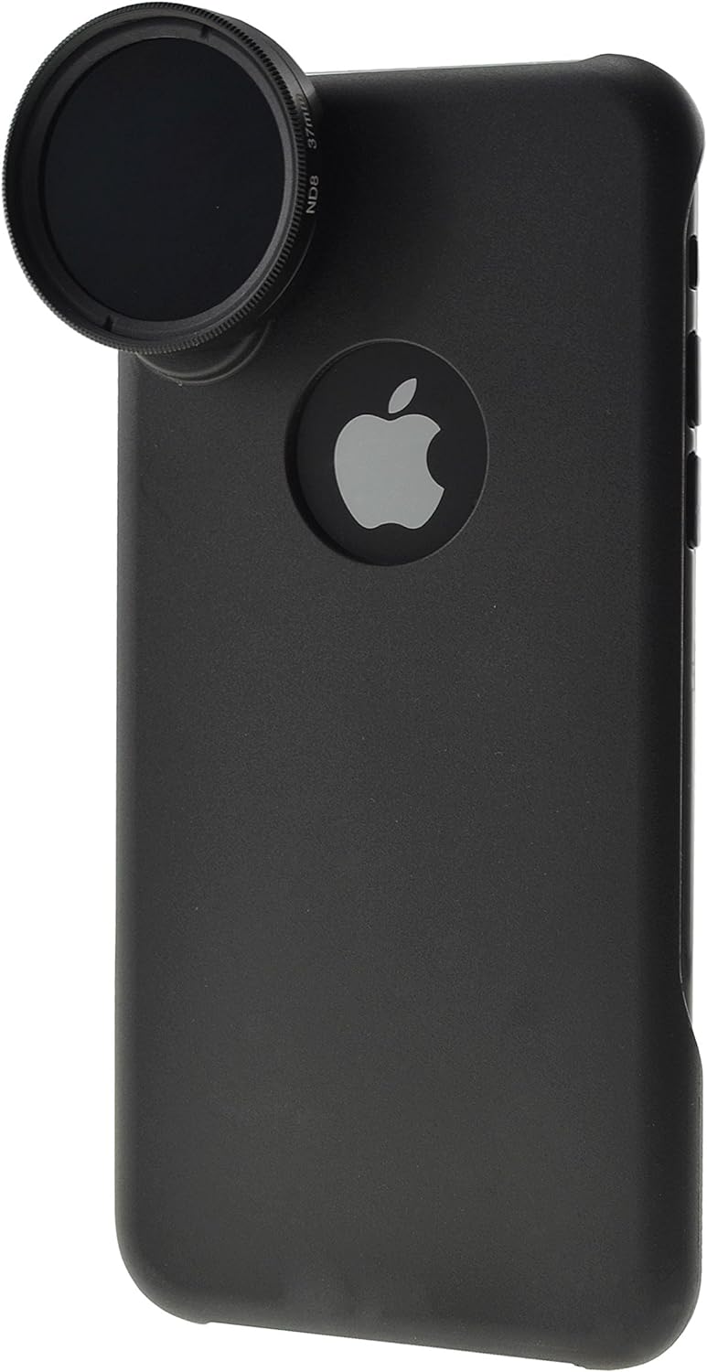 Setzen Sie das iPhone X in die Hartschale ein, schrauben Sie die ND-Filterlinse auf und profitieren Sie von der verbesserten Kontrolle über Ihre Belichtungen. Ideal für professionelle und kreative Fotografie, die besondere Effekte und Schärfentiefe erfordert.