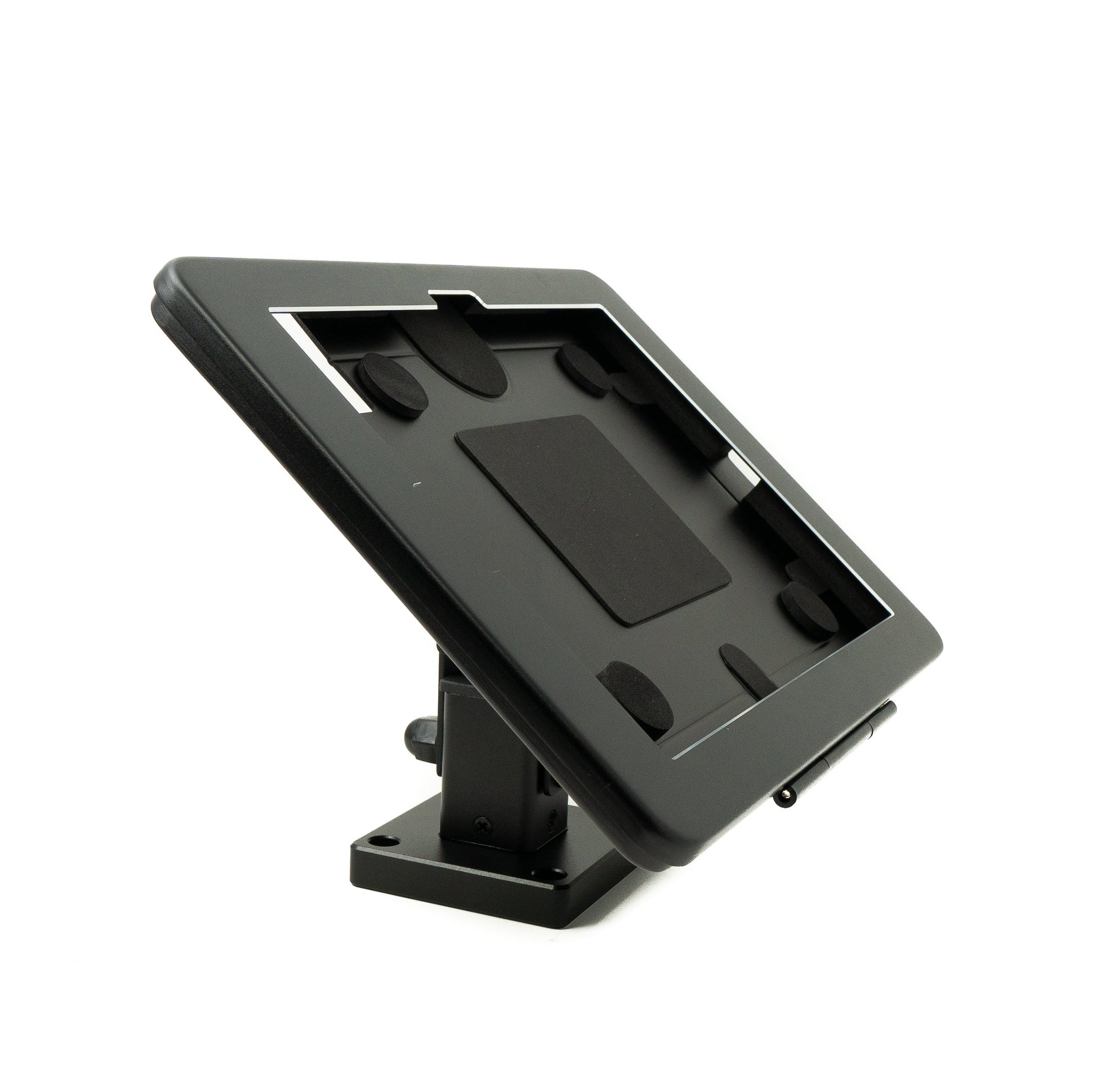 Diese Halterung in trendigem Design integriert Effizienz und Sicherheit für Ihre Messeschau. Die Schutzhülle ist zu allen Seiten um 180° neigbar. Das eingebaute Schloss verhindert Ladendiebstähle. Die Halterung eignet sich ideal für Messen, Ausstellungen, Ladenflächen und vielen mehr.