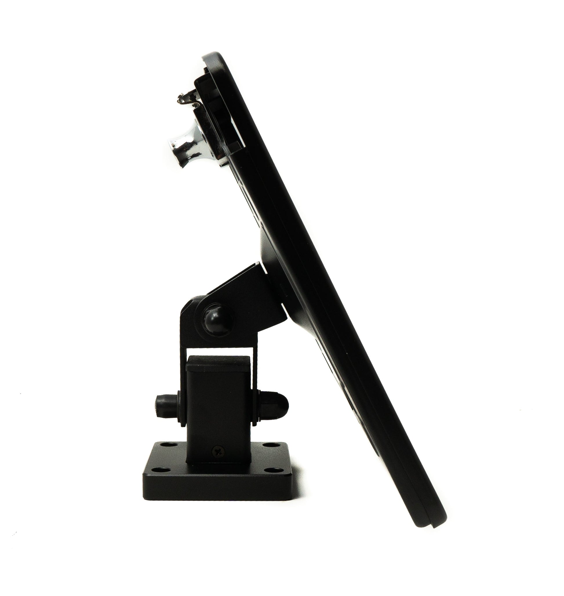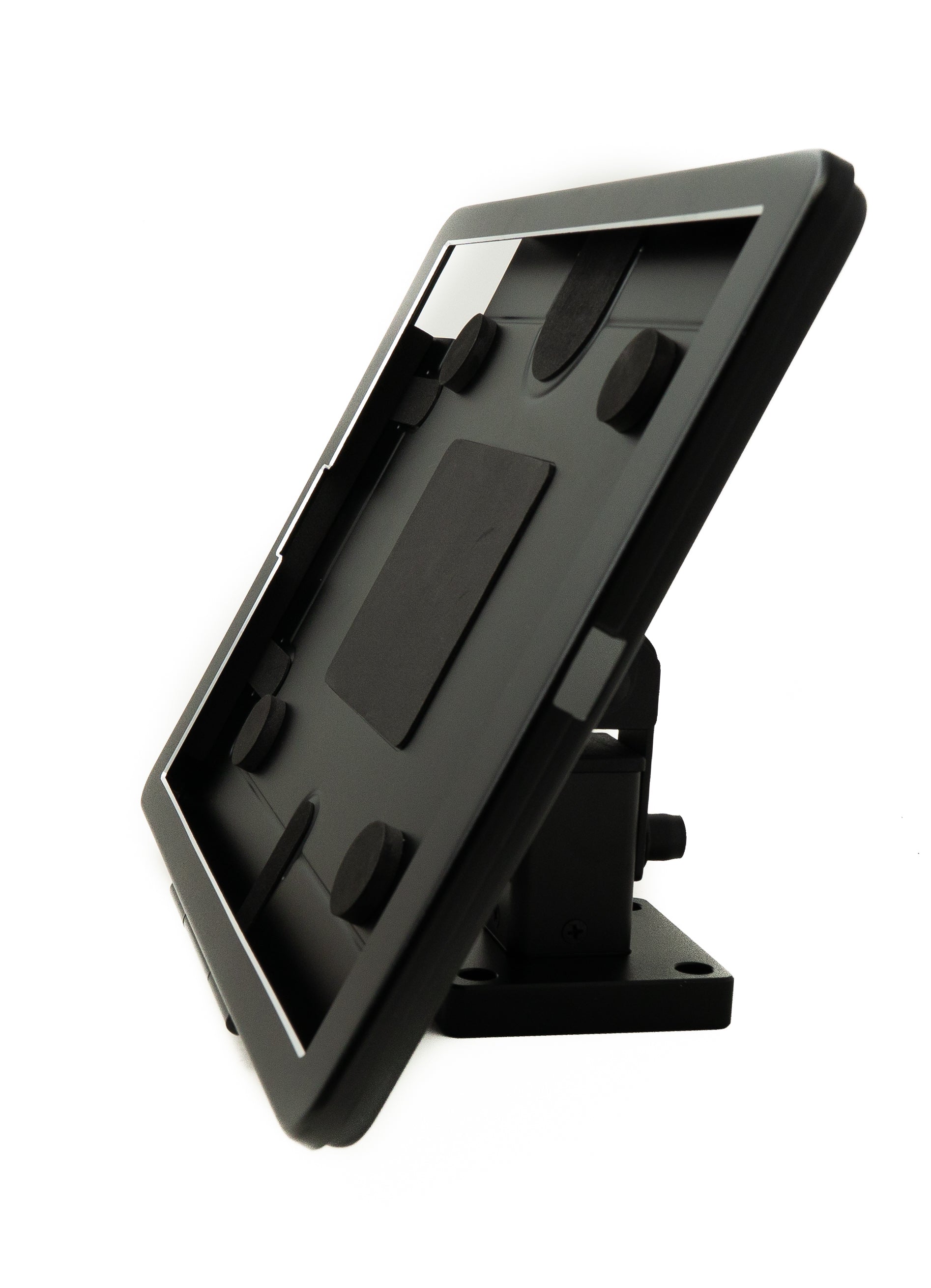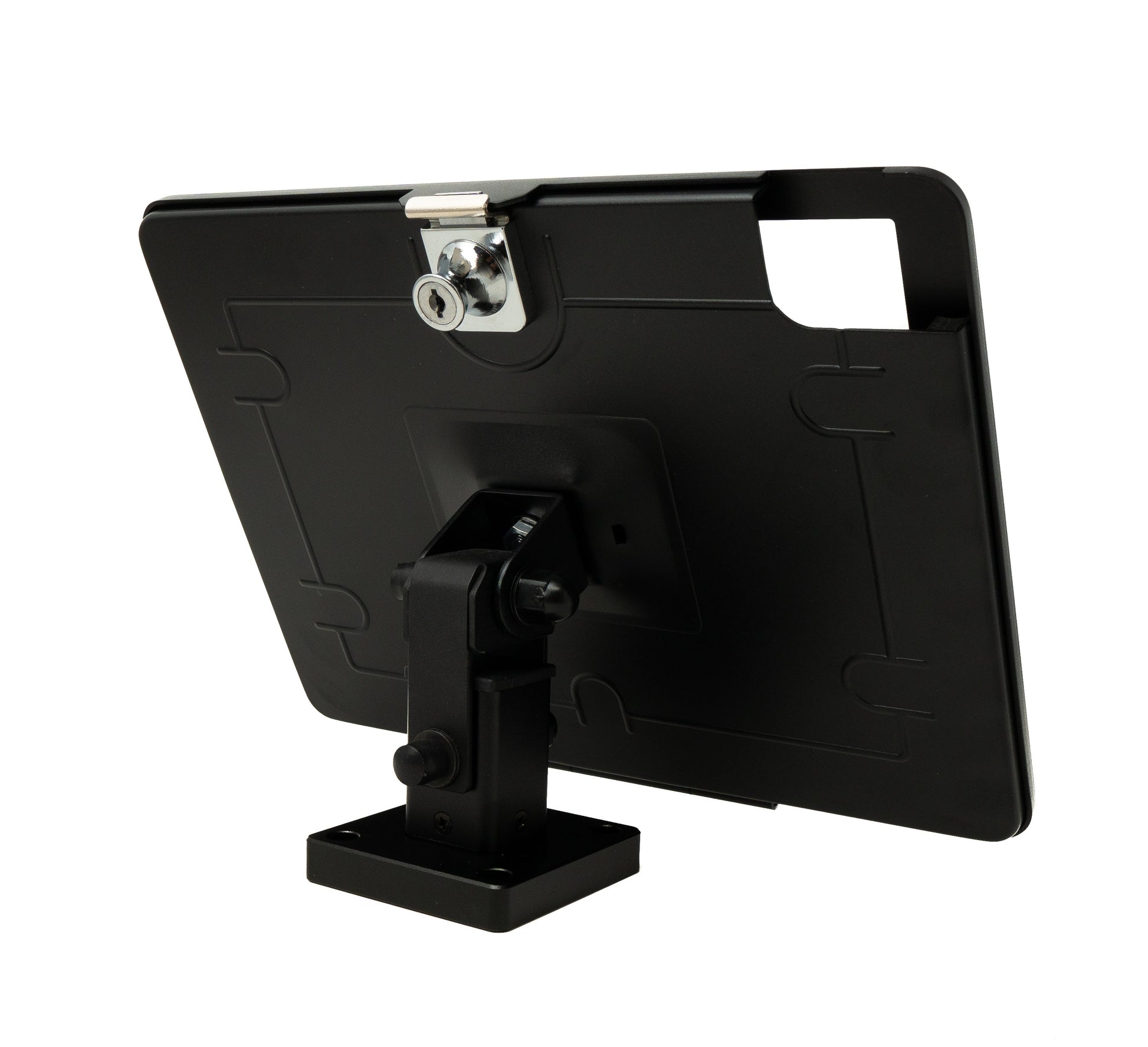 Diese Halterung in trendigem Design integriert Effizienz und Sicherheit für Ihre Messeschau. Die Schutzhülle ist zu allen Seiten um 180° neigbar. Das eingebaute Schloss verhindert Ladendiebstähle. Die Halterung eignet sich ideal für Messen, Ausstellungen, Ladenflächen und vielen mehr.