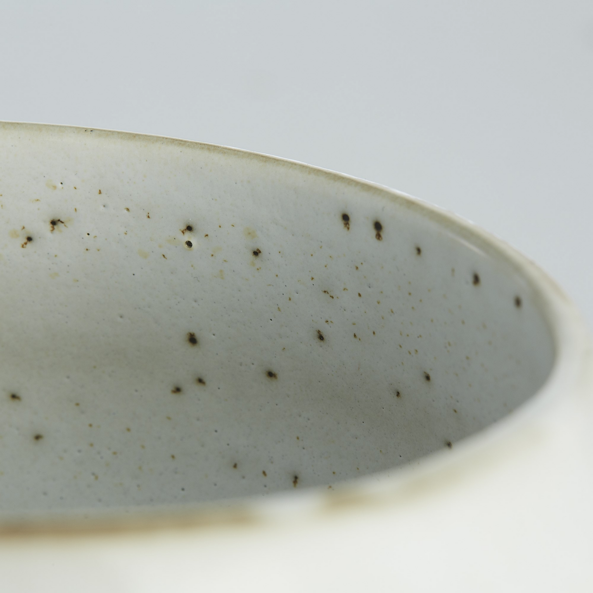 Formschöne Tasse/Untertasse aus Keramik. Die Oberfläche ist hochglänzend und oft leicht gesprenkelt. Die Farbe fällt immer unterschiedlich aus und hat oft einen beigebraunen Ton und bräunlichen Rand. Das passende Frühstücks- und Essgeschirr sowie diverse Schalen werden ebenfalls angeboten.