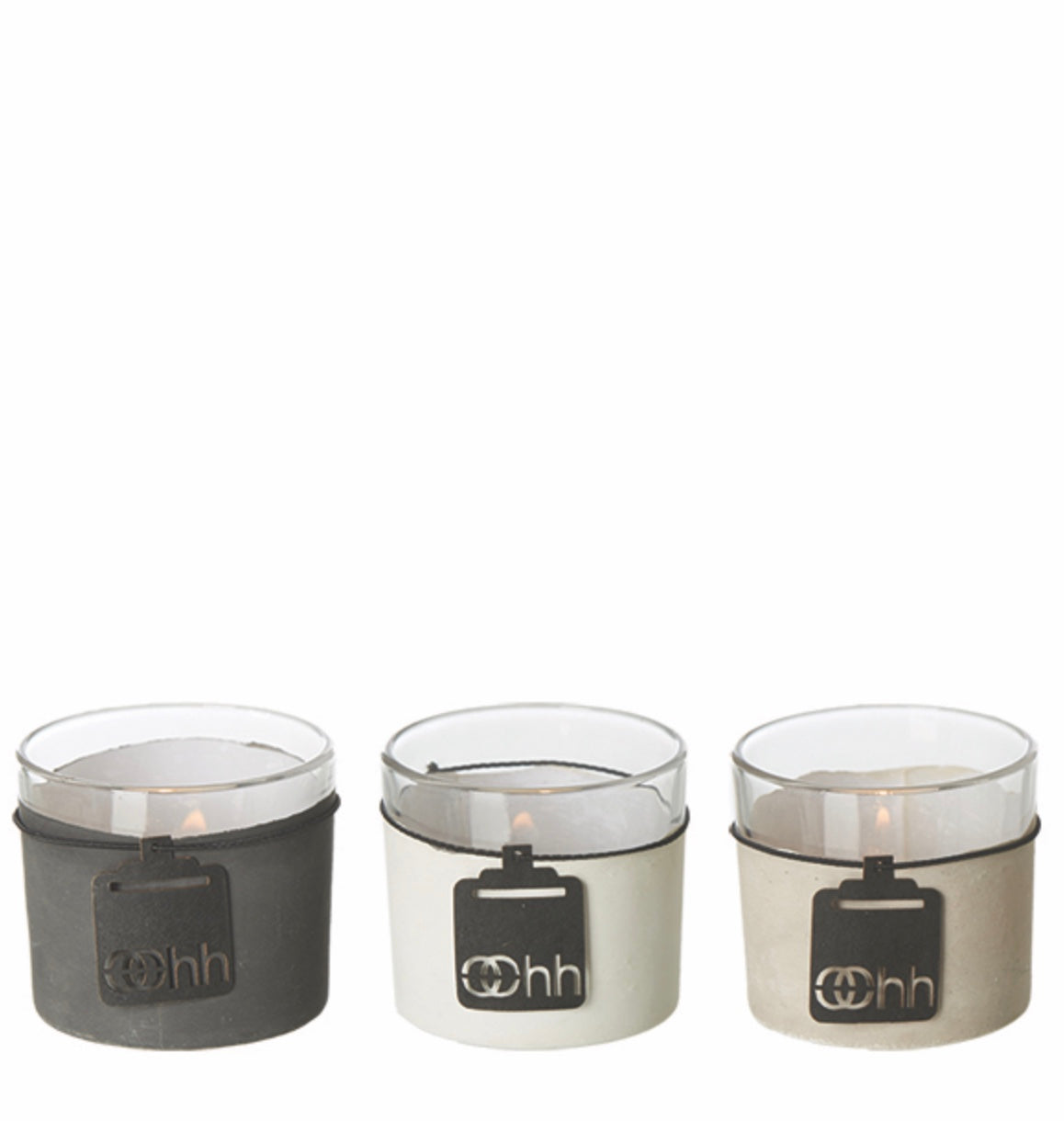 Teelichthalter Zement/Glas, in 3 Farben