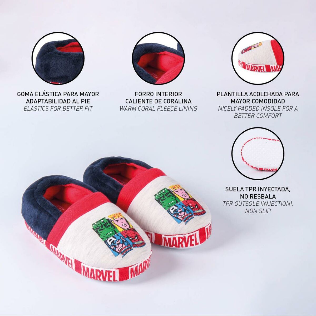 Ermögliche es deinen Kindern, ihre inneren Superkräfte mit unseren The Avengers Kinderhausschuhen in Grau zu entfesseln. Diese Hausschuhe sind die perfekte Wahl für kleine Superhelden, die davon träumen, Teil des mächtigsten Heldenteams zu sein. Hergestellt aus hochwertigem Polyester und mit einer strapazierfähigen TPR-Sohle ausgestattet, bieten diese Hausschuhe nicht nur Komfort und Sicherheit, sondern auch Stil. Das hellgraue Design passt zu jedem Outfit und die aufregenden Avengers-Designs regen die Fantasie an. Dank der rutschfesten Sohlen können deine Kinder sicher durch das Haus toben, als wären es die Straßen von New York, auf der Jagd nach Bösewichten. Perfekt für drinnen und draußen, geben diese Hausschuhe jedem Kind das Gefühl, jederzeit in die Rolle seiner Lieblings-Superhelden schlüpfen zu können.