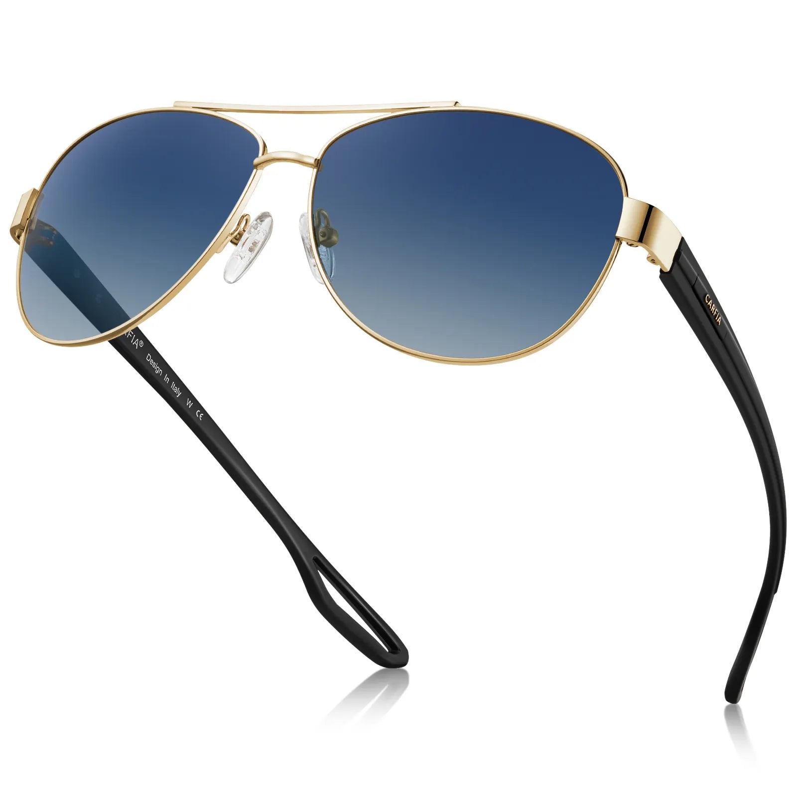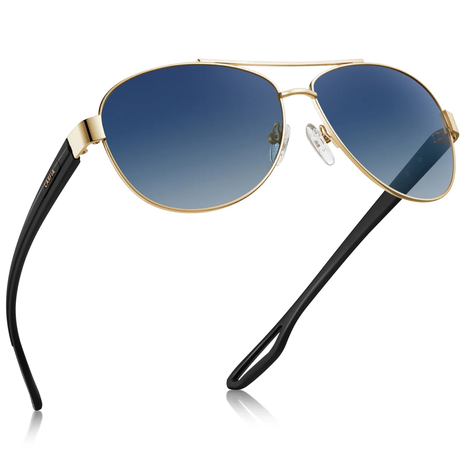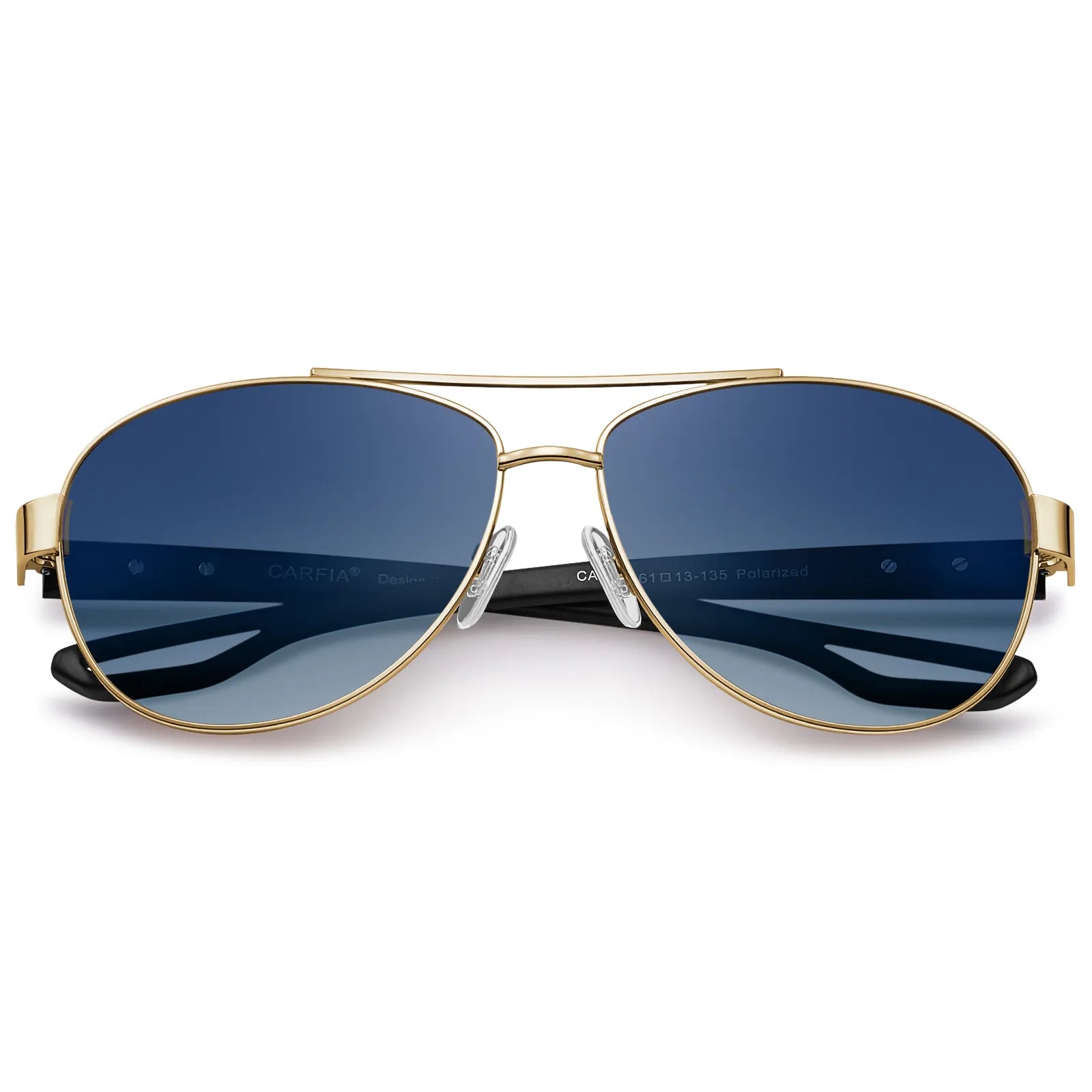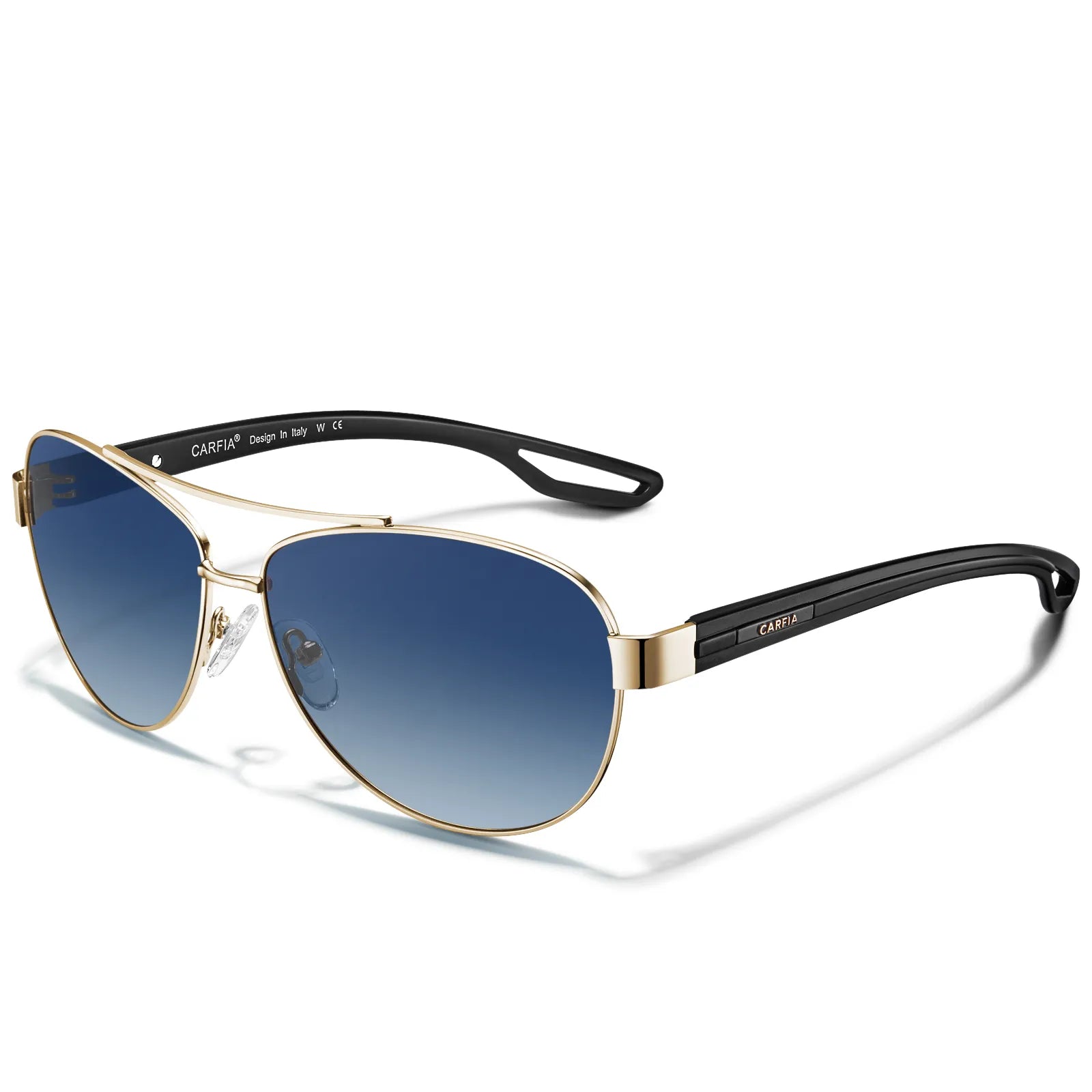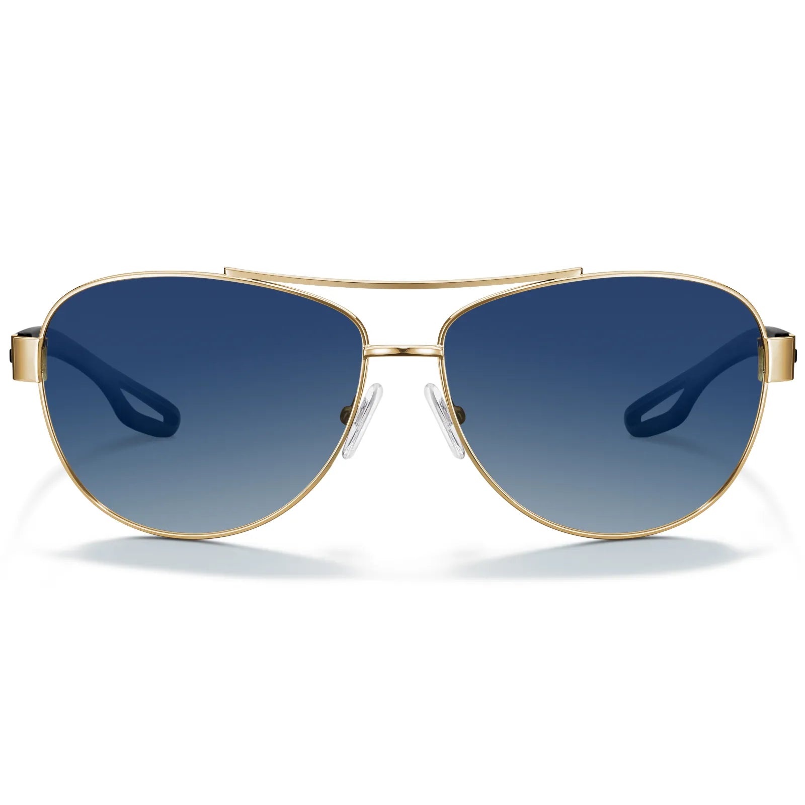 This new interpretation of classic aviator sunglasses combines modern and retro design elements. Calm takes the iconic pilot look to a new level of coolness. The full-rim gold finish and black acetate temples perfectly match, these aviator sunglasses show an active lifestyle!