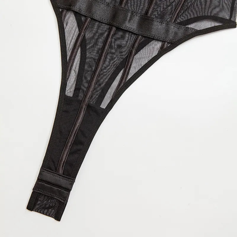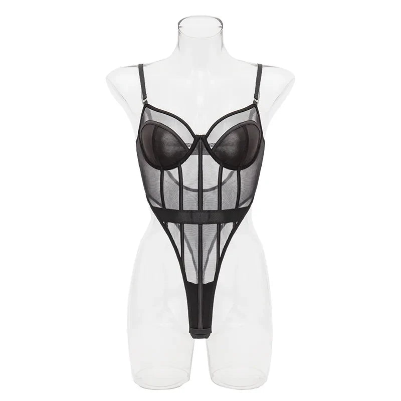 Bereit für die Herausforderung? Mit diesem eng anliegenden Body wirst du deine Grenzen überschreiten! Durch den hohen Schnitt und das transparente Spitzenmaterial wirst du dich frei und sinnlich fühlen. Perfekt für mutige und abenteuerlustige Frauen.