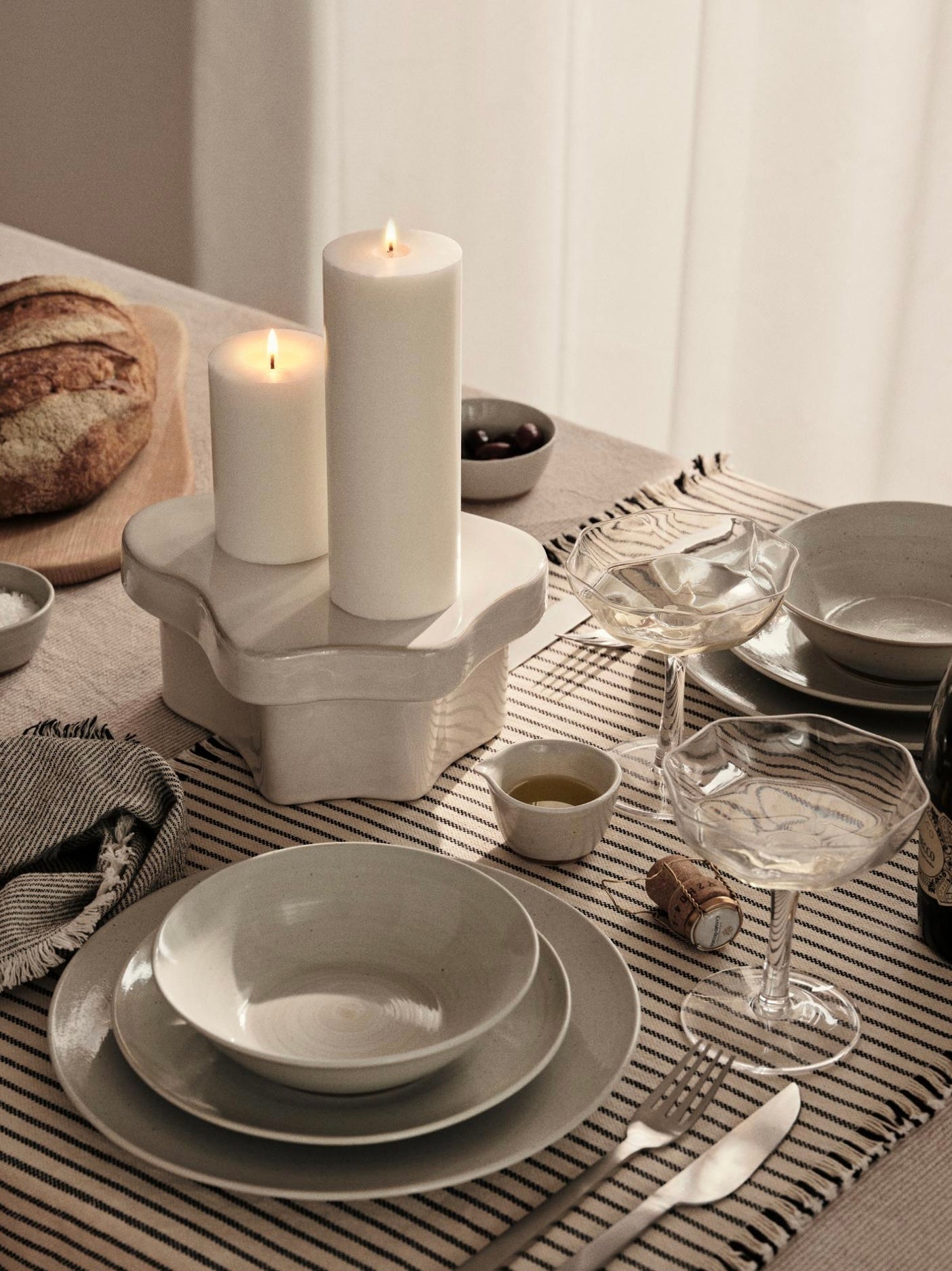 Hochwertiger Tischläufer aus reiner Baumwolle. Mit kleinen Fransen in schwarz und ecru an den Säumen gearbeitet.
